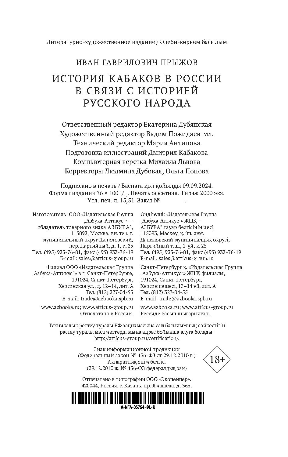 Книга: История кабаков в России (Иван Гаврилович Прыжов); Азбука, 2024
