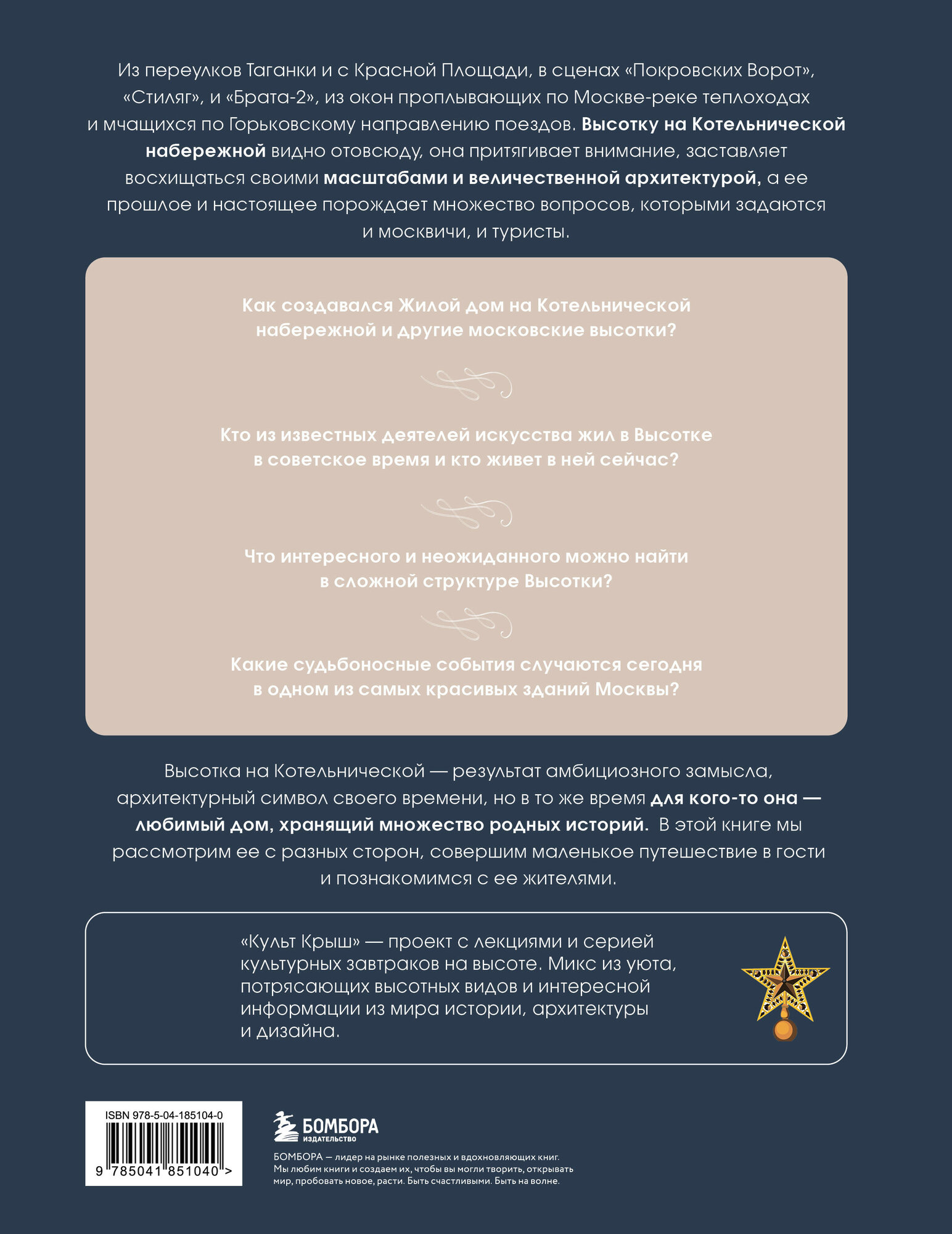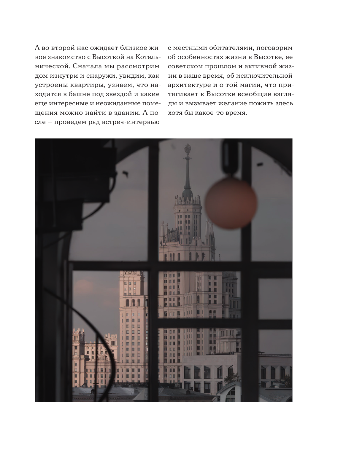 Уютная атмосфера, потрясающий высотный вид и увлекательная информация из мира истории, архитектуры и дизайна — все это собралось воедино в рамках проекта «Культ Крыш» в высотке на Котельнической набережной! Лекции с потрясающим видом на нашу столицу вдохновили авторов проекта рассказать подлинную историю одной из самых красивых сталинских высоток в мире, а также собрать всю уникальную информацию в одной книге — «Высотка на Котельнической. История строительства дома и рассказы его жителей»!