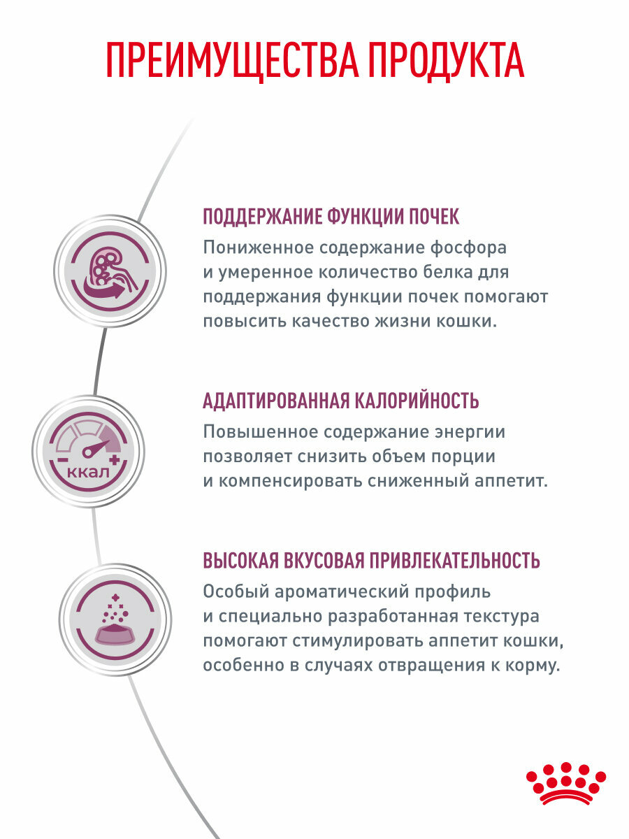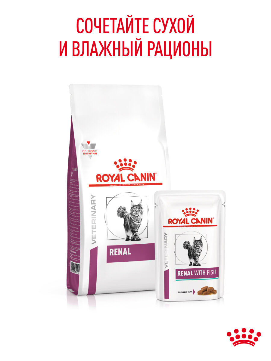 Сухой корм ROYAL CANIN RENAL (ренал) - полнорационный диетический корм для взрослых кошек для поддержания функции почек при острой или хронической болезни почек. Пониженное содержание фосфора и умеренное количество белка помогает поддерживать функции почек. Специально разработанный ароматический профиль помогает удовлетворить особые вкусовые предпочтения кошки.