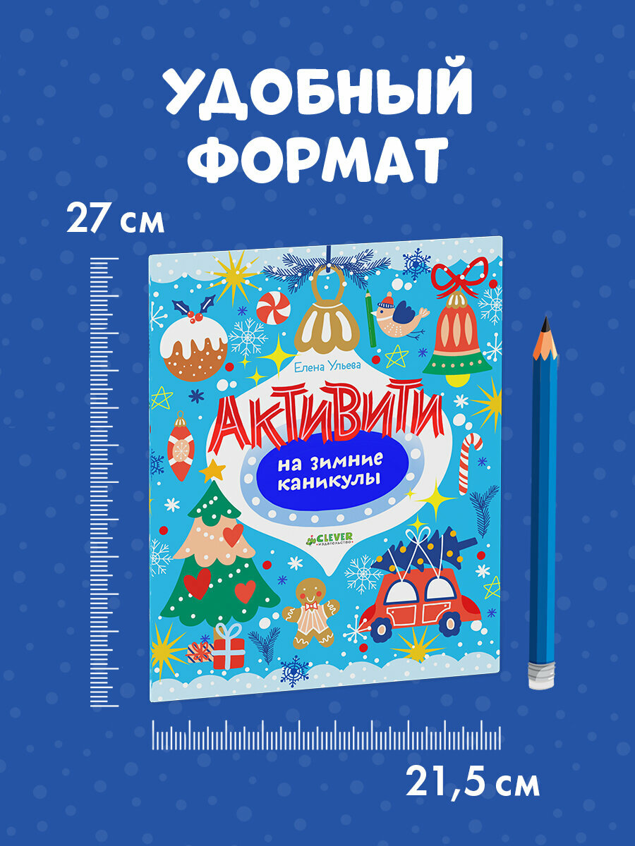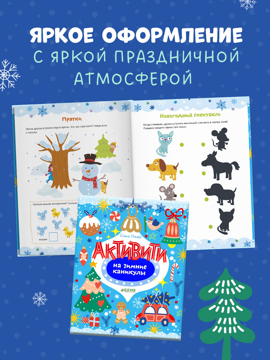 Книга новогодних и зимних игр с яркими иллюстрациями «Активити на зимние каникулы» понравится всем, кто любит задачи и задачки, ходилки и бродилки, раскраски и рисовалки, загадки, ребусы, головоломки, лабиринты и другие популярные игры, такие как «найди и покажи». Здесь вы найдете самые лучшие задания для развития у ребенка логического мышления, внимания, мелкой моторики, памяти. Эта книжка — прекрасный творческий досуг для тех, кто хочет провести каникулы сказочно, волшебно и с пользой. Это чудесный подарок для дочери и сына, внука и внучки, для всех мальчиков и девочек, которые любят зиму, снеговиков, Деда Мороза со Снегурочкой, на Новый год (НГ) или на Рождество и даже день рождения. Книжка также может стать дополнением к подарочному набору или праздничному комплекту детской литературы в детском саду или на любом празднике в Новый год — 2025.