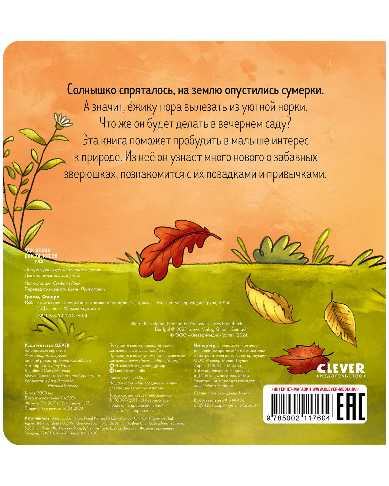 Ёжик в саду Первая книга малыша о природе (Гримм Сандра), 2024