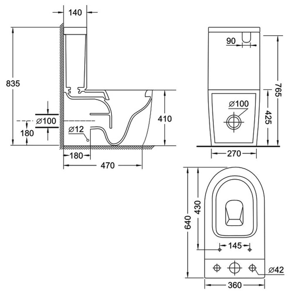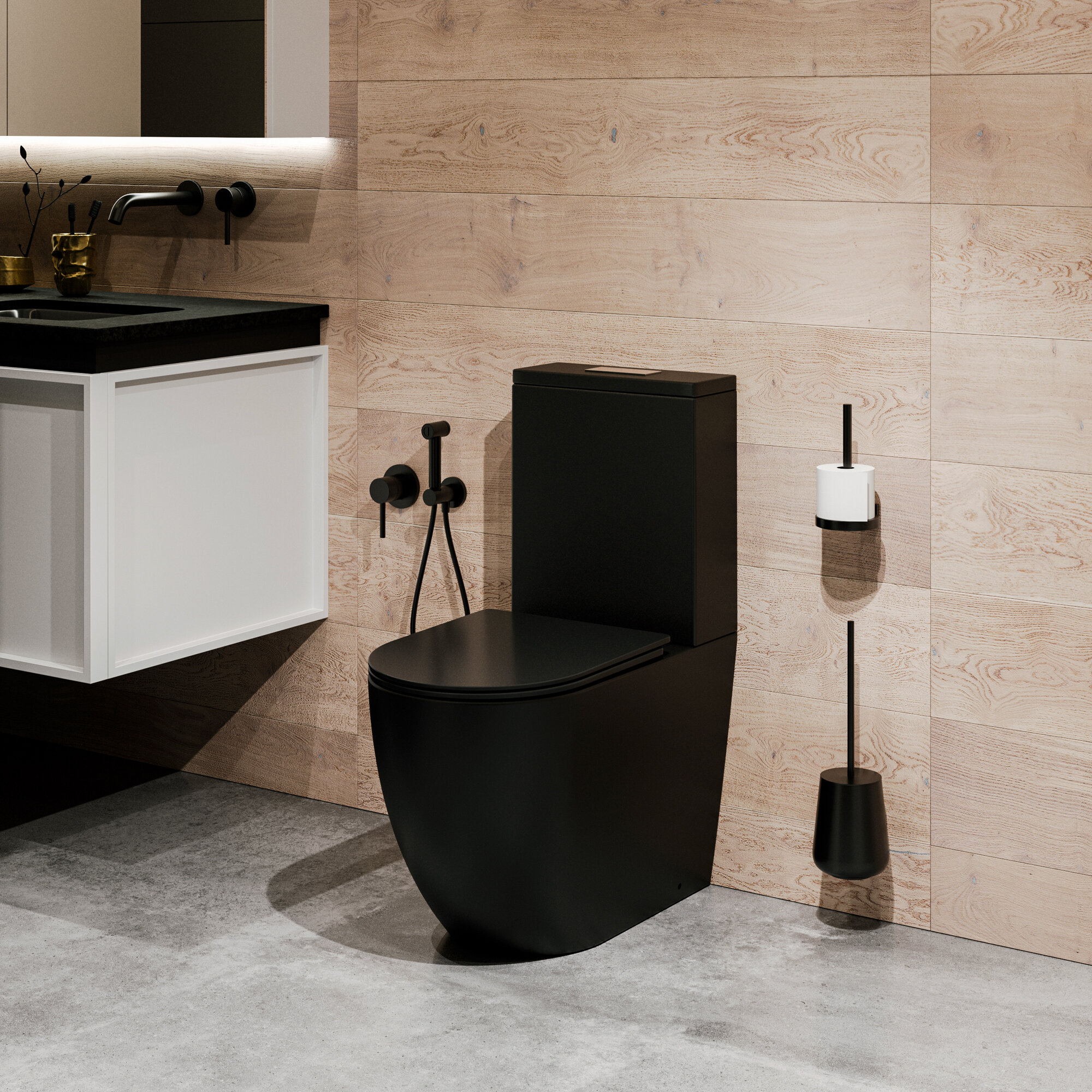 Унитаз-компакт Grossman безободковый с тонкой крышкой черный матовый GR-4494BMSQ