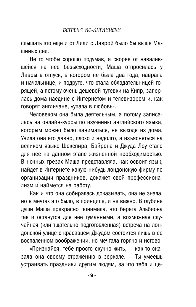 Перемены в жизни Марии Листопад начались, когда она без памяти влюбилась в актера Джуда Лоу. Чувство было настолько сильным, что Маша взяла отпуск и засела за изучение английского. Ее усилия не пропали даром — вскоре она познакомилась с двумя симпатичными британцами, приехавшими в командировку. Тут-то и пригодилось знание языка, ведь оба джентльмена принялись ухаживать за одинокой девушкой. По странному стечению обстоятельств они проявляли недюжинный интерес к ее квартире, и вскоре там был убит любимый отчим Маши, не вовремя заглянувший навестить ее…