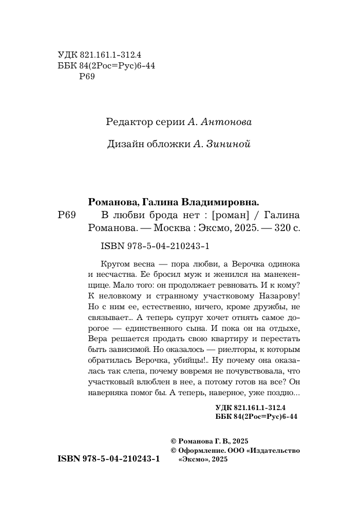 Книга: В любви брода нет (Галина Владимировна Романова); Эксмо, 2024