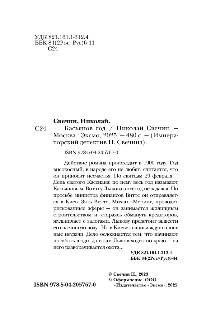 Книга: Касьянов год (Николай Свечин); Эксмо, 2024