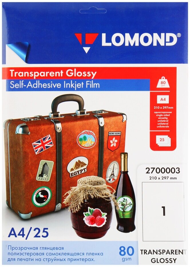 Прозрачные полиэстеровые самоклеящиеся пленки Lomond PET Self-Adhesive Clear Ink Jet Film предназначены для изготовления наклеек и стикеров различного назначения. Обратная сторона таких пленок имеет адгезивное покрытие. Специальное покрытие лицевой стороны обеспечивает получение четких текстов, фотографическое качество изображений, точную цветопередачу. Пленки не смазываются при печати, быстро сохнут, не выцветают. Совместимы как с водорастворимыми, так и с пигментными чернилами. Изображения на пленках устойчивы к внешним воздействиям, долговечны. Пленки антистатичны и термостабилизированы.
