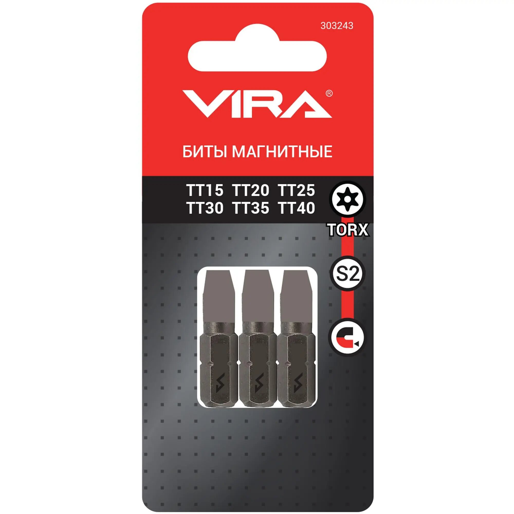 **Набор бит магнитных Vira 303243** представляет собой комплект насадок для шуруповерта и дрели. Он позволяет быстро сменить наконечник в инструменте, чем значительно упрощает процесс работы. Биты используются для вкручивания саморезов, болтов, шурупов, гаек. Наличие магнитного фиксатора на основании обеспечивает долговечное крепление и позволяют выполнять работы даже в труднодоступных местах.