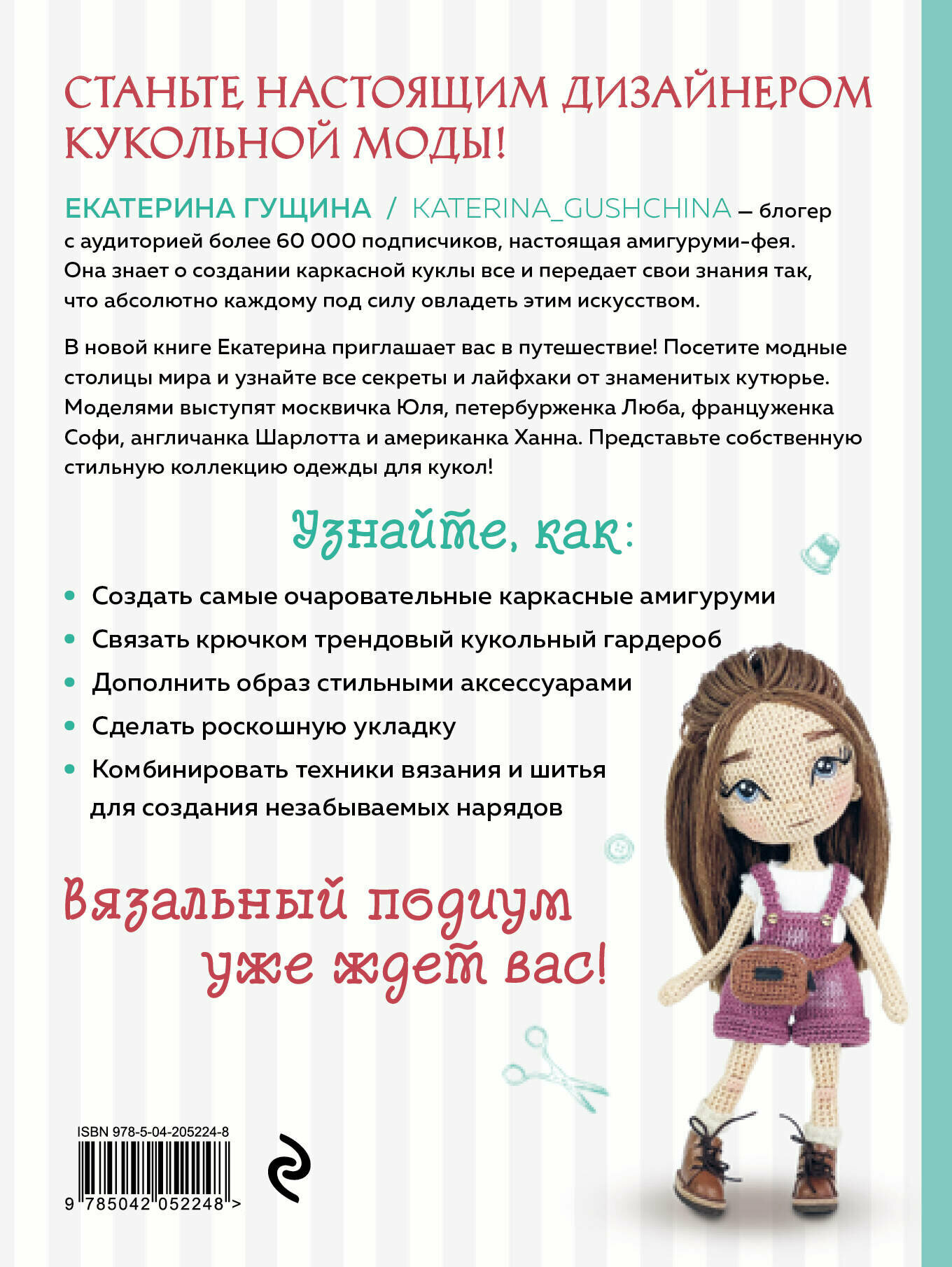 В своей новинке популярный блогер Екатерина Гущина приглашает вас за кулисы недели вязаной моды. Посетите модные столицы мира и узнайте все секреты и лайфхаки от знаменитых кутюрье. Моделями выступят москвичка Юля, петербурженка Люба, француженка Софи, американка Ханна и англичанка Шарлотта. Представьте собственную стильную коллекцию одежды для кукол!