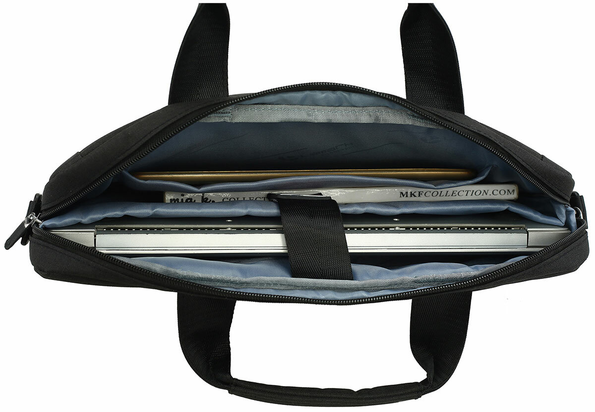 Сумка для ноутбука Lamark L224 - это симпатичный, элегантный, эргономичный аксессуар, который может стать незаменимым компаньоном и помощником для любого пользователя ноутбука с диагональю экрана до 14". Цвет сумки - синий. Сумка Lamark L224 Blue выполнена из прочного и практичного износостойкого материала (полиэстер), который обеспечивает постоянную надежную защиту ноутбука от внешних воздействий при его переноске или транспортировке. Материал также наделён водоотталкивающими свойствами, и пользователь может быть уверен, что устройство, как и другие предметы, помещённые в сумку, останется сухим при любых погодных условиях. Сумка Lamark L224 оснащена эффективными функциями защиты от тряски и вибраций, от боковых ударов, защитой углов устройства от сколов, а также защитой от воды. Всё это обещает сохранность ноутбука даже при активном использовании и в самых разнообразных обстоятельствах и ситуациях. Помимо ноутбука, во внутренних отделениях сумки можно удобно разместить другие полезные повседневные предметы, а также сопутствующие аксессуары. Основное отделение сумки весьма вместительно, его размеры - 33.6 x 23.1 x 3.5 см. К сумке прилагается плечевой ремень, и это безусловно добавляет комфорта при переноске: можно носить сумку на плече или через плечо, что особенно актуально в условиях города. Если вы остановите свой выбор на сумке для ноутбука Lamark L224, вы определенно не прогадаете: в вашем распоряжении окажется стильный и удобный аксессуар, а ваш ноутбук внутри сумки будет чувствовать себя в безопасности каждый день.