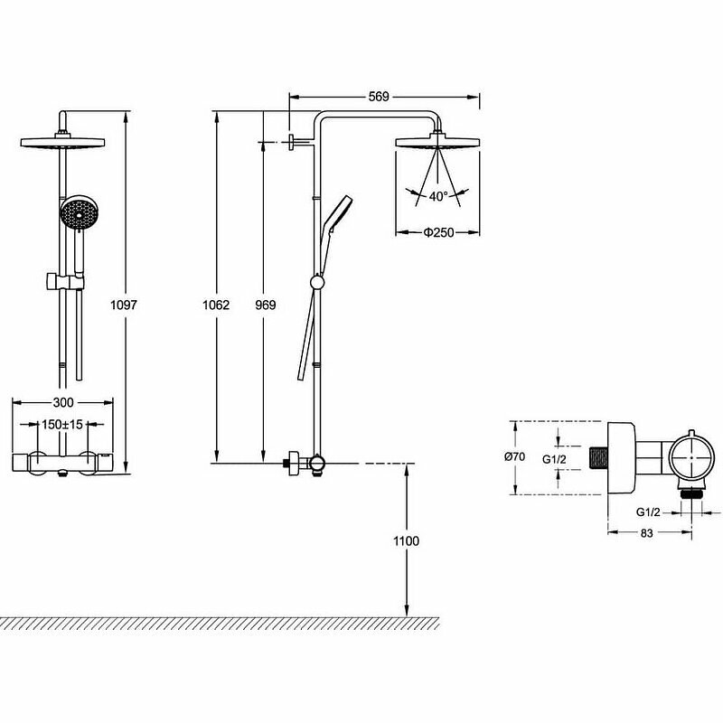 | Габариты верхнего душа | 250 |