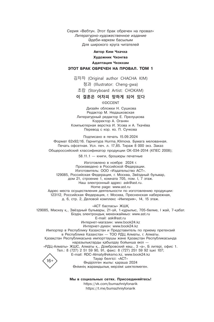 Этот брак обречен на провал. Том 1 (Ким Чхачха, Чхонгва, Чхокхам); АСТ, 2024