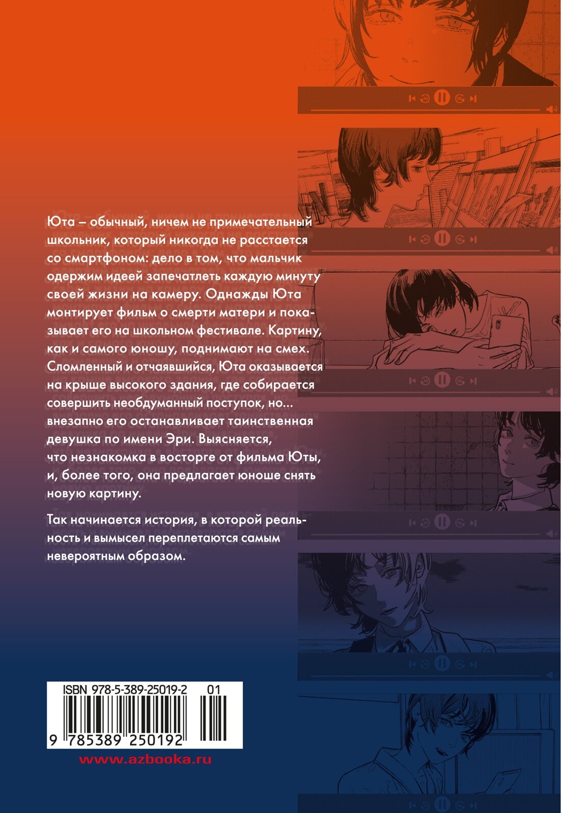 Юта – обычный, ничем непримечательный школьник, который никогда не расстается со смартфоном: дело в том, что мальчик одержим идеей запечатлеть каждую минуту своей жизни на камеру. Однажды Юта монтирует фильм о смерти матери и показывает его на школьном фестивале. Картину, как и самого юношу, поднимают на смех. Сломленный и отчаявшийся, Юта оказывается на крыше высокого здания, где собирается совершить необдуманный шаг, но… Внезапно его останавливает таинственная девушка по имени Эри. Выясняется, что незнакомка в восторге от фильма Юты и более того – она предлагает юноше снять новую картину. Так начинается история, где реальность и вымысел переплетаются самым невероятным образом.
