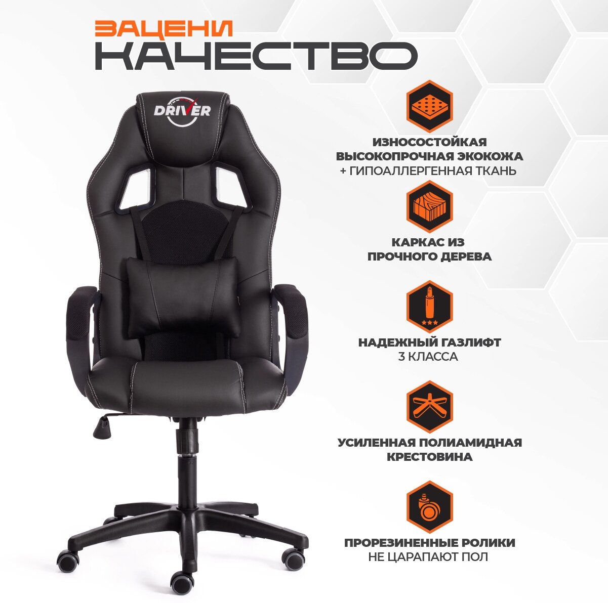 Кресло компьютерное TC Driver искусственная кожа черное 55х49х126 см