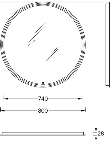Зеркало Mio выполнено с деликатной подсветкой по периметру. Светодиодная подсветка включается одним прикосновением к сенсору в нижней части зеркального полотна, там же нанесен логотип Kerama Marazzi.