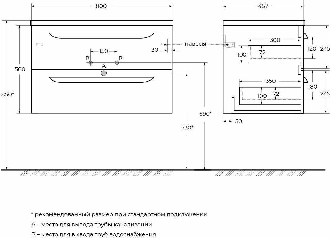 - Габариты корпуса тумбы (ШхВхД): 800х500х457 мм.