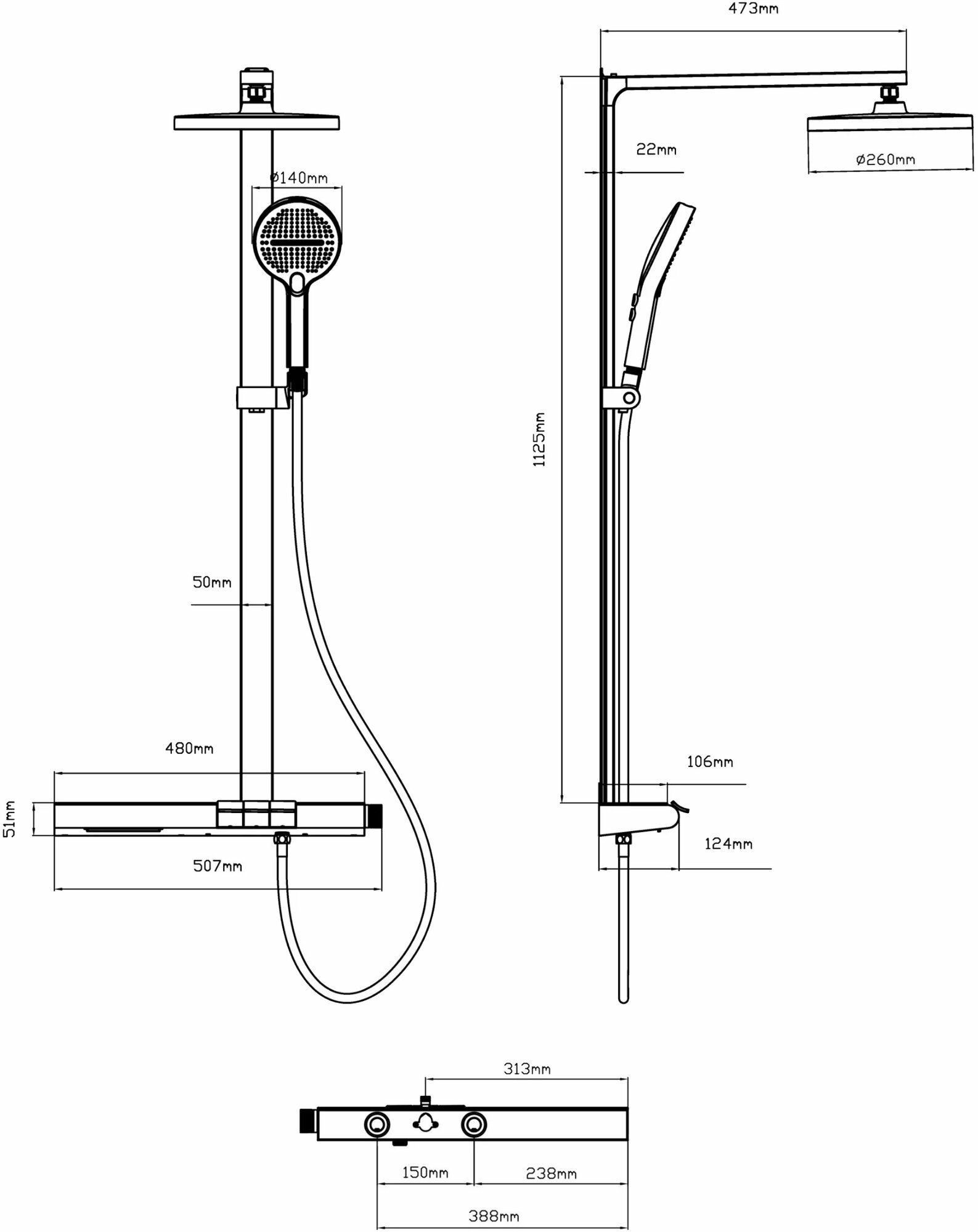 - Материал ручного душа и верхнего душа: ABS-пластик.