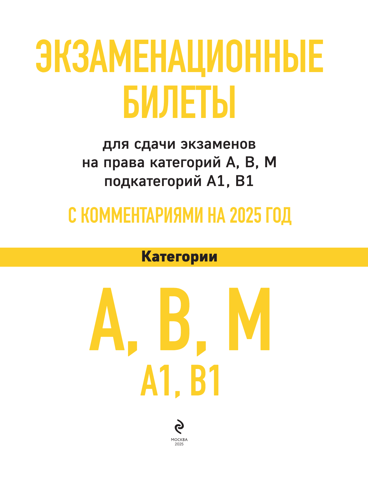 Экзаменационные билеты для сдачи экзаменов на права категорий А В М подкатегорий А1 В1 (Александр Александрович Бобров); Эксмо, 2024