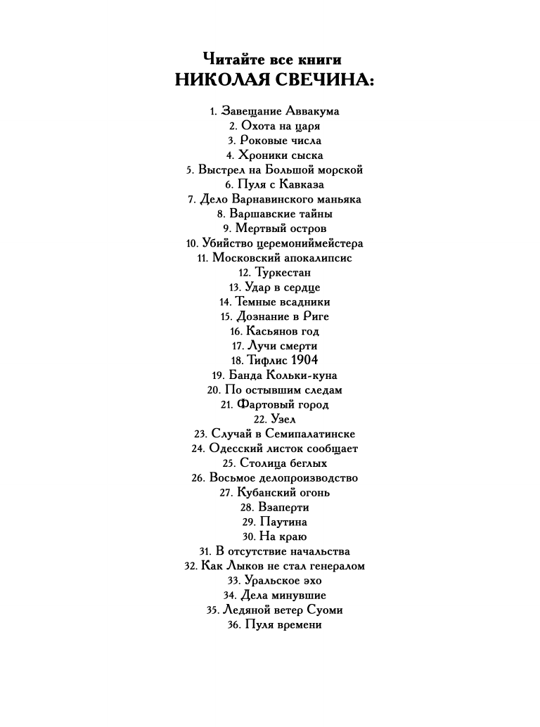| Серия | Исторические детективы Николая Свечина (обложка) |