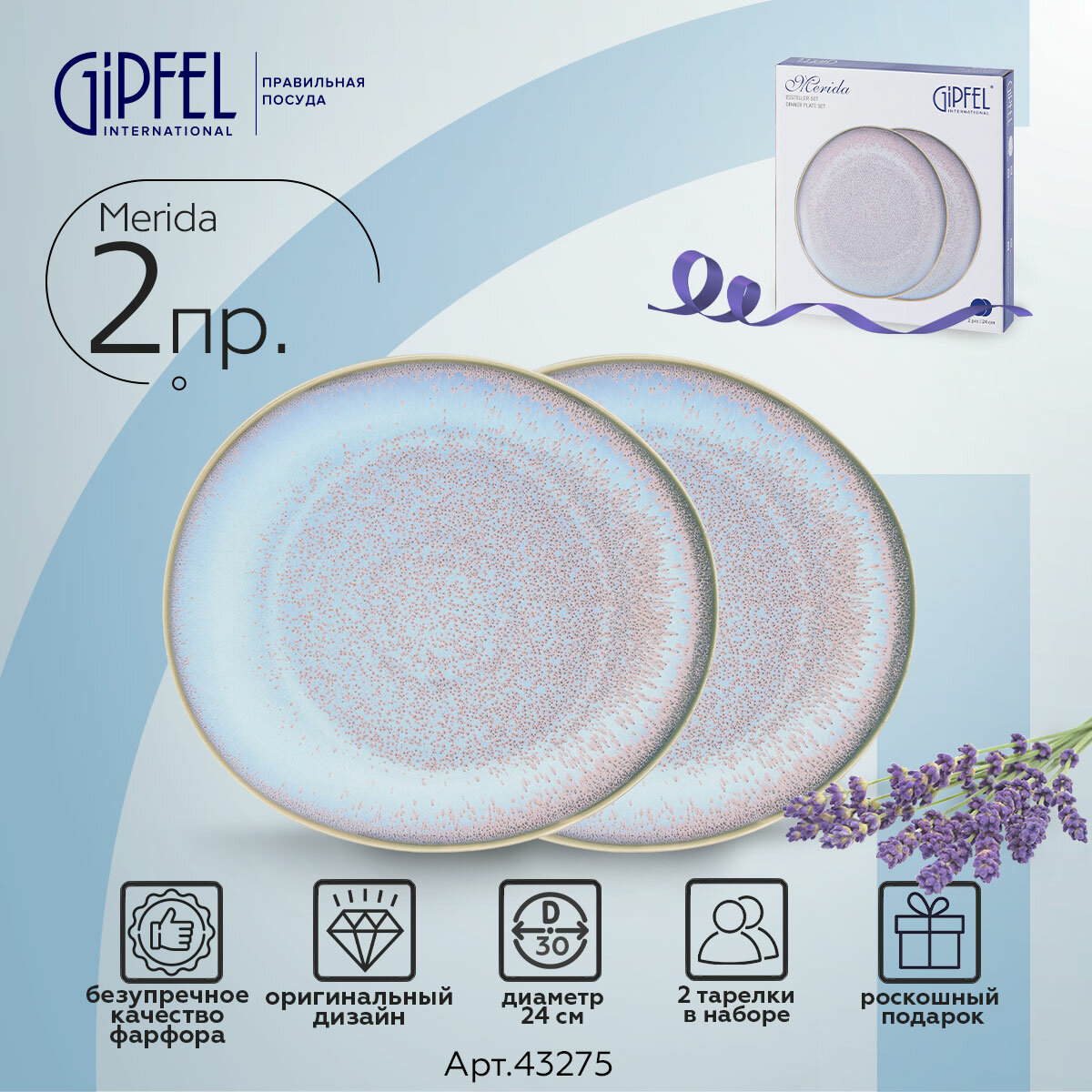 Набор тарелок обеденных Gipfel Merida 43275 24 см. В наборе 2 тарелки, изготовлены из фарфора.