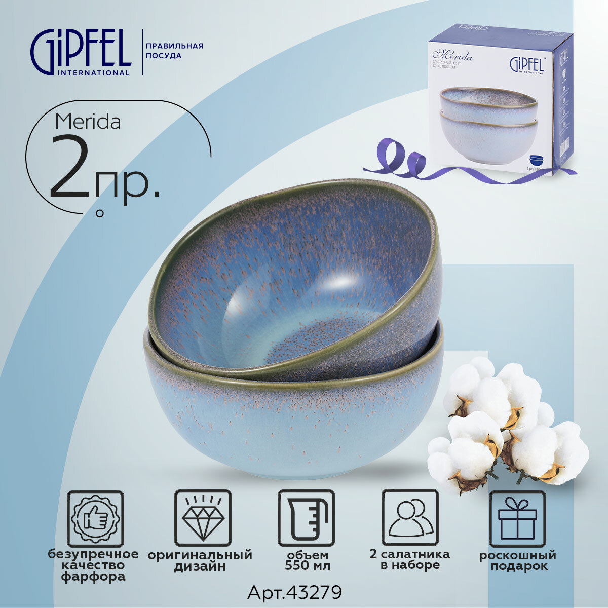 Набор салатников Gipfel Merida 43279 550 мл. В наборе 2 салатника, изготовленных из фарфора.