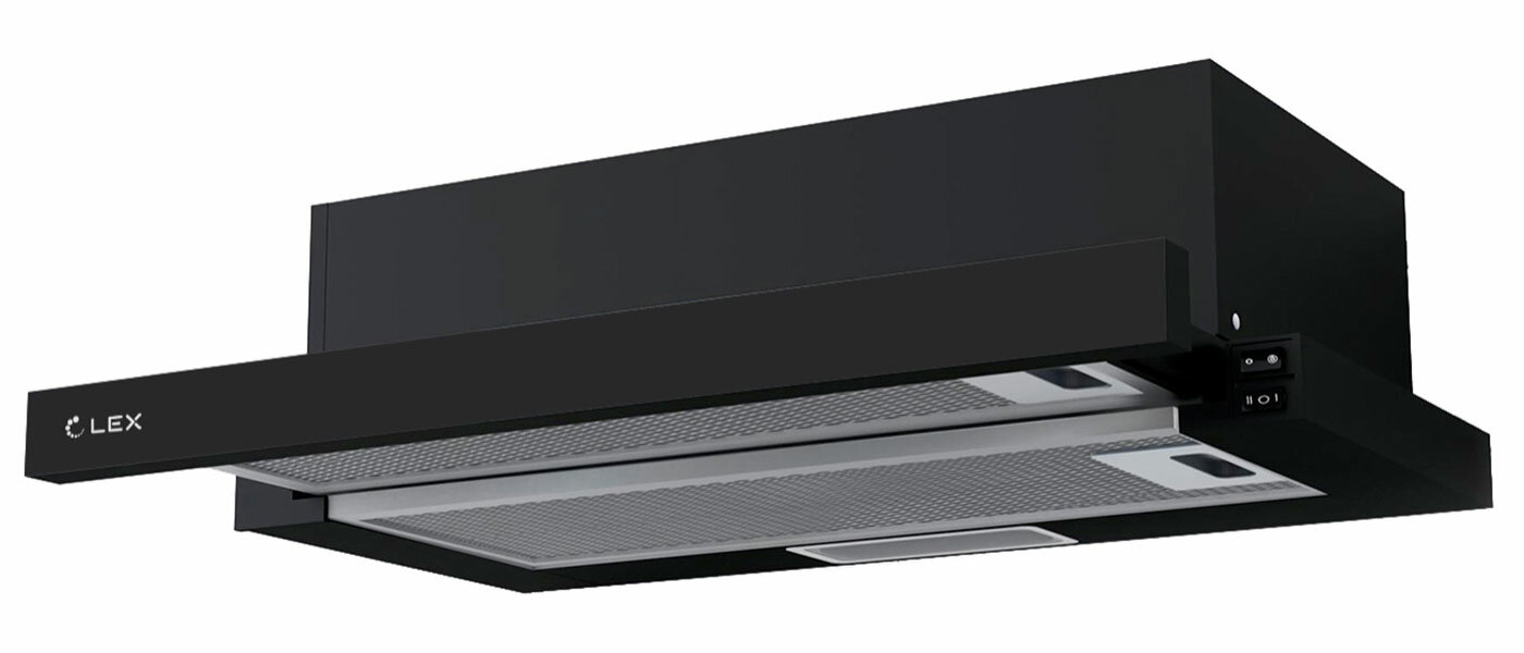 Компактная и тихая вытяжка LEX HIDE 500 — прекрасное решение для небольшой кухни. У модели высокая мощность, простое управление, комфортная для глаз подсветка. С помощью выдвижной каретки можно быстро увеличить площадь поглощения запахов и пара. Вытяжка встраивается в шкаф шириной 50 см, на виду остается только узкая панель в черном, стальном или белом цвете, поэтому эта модель идеально впишется в любой интерьер. Устройство можно подключить к вентиляции или установить на мотор угольные фильтры для работы вытяжки в режиме рециркуляции.