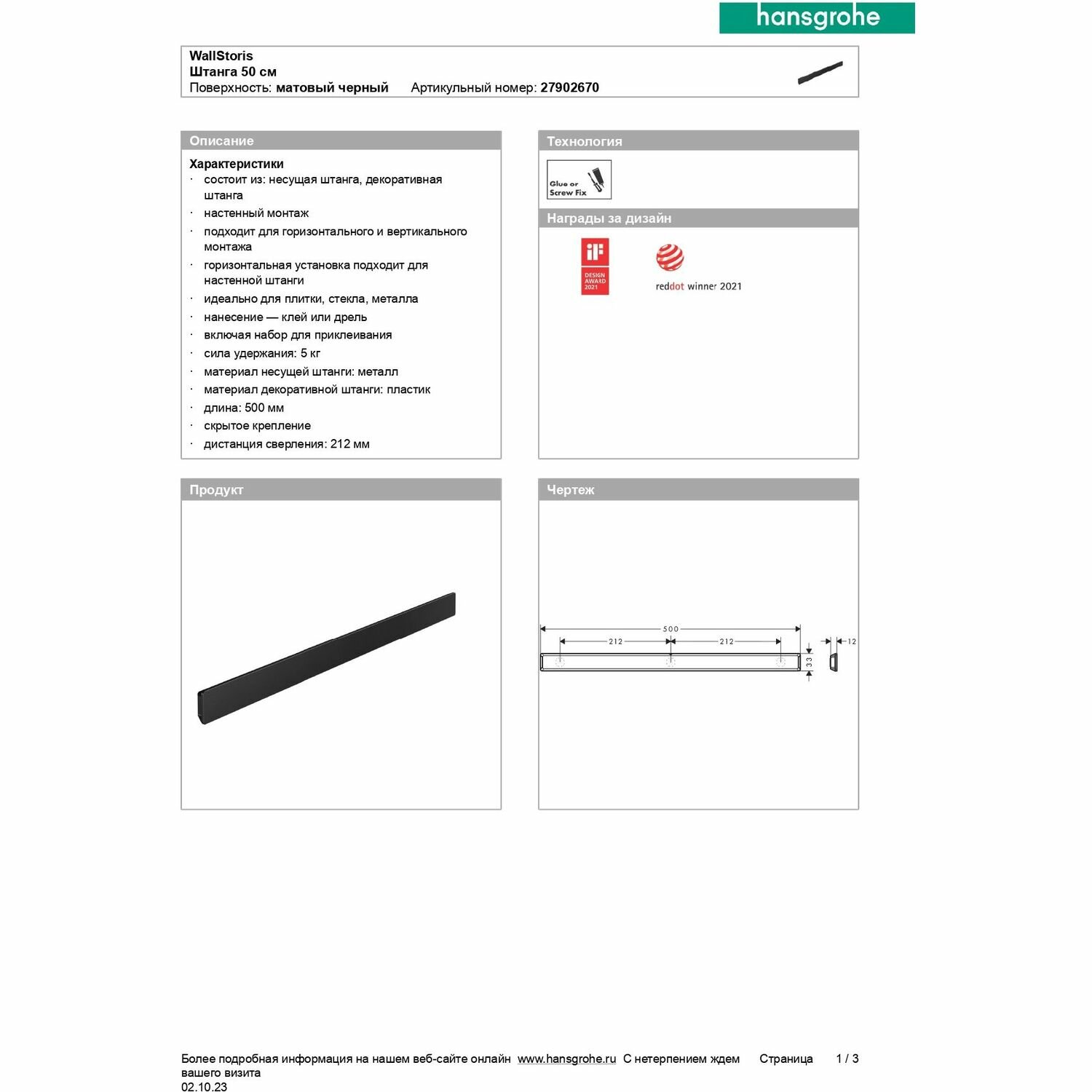 На сегодняшний день товар «Штанга hansgrohe WallStoris 50 см 27902670 матовый черный 27902670/HG» можно купить с кешбеком в 3 магазинах: Santehnika-room, hansgrohe, Яндекс.Маркет