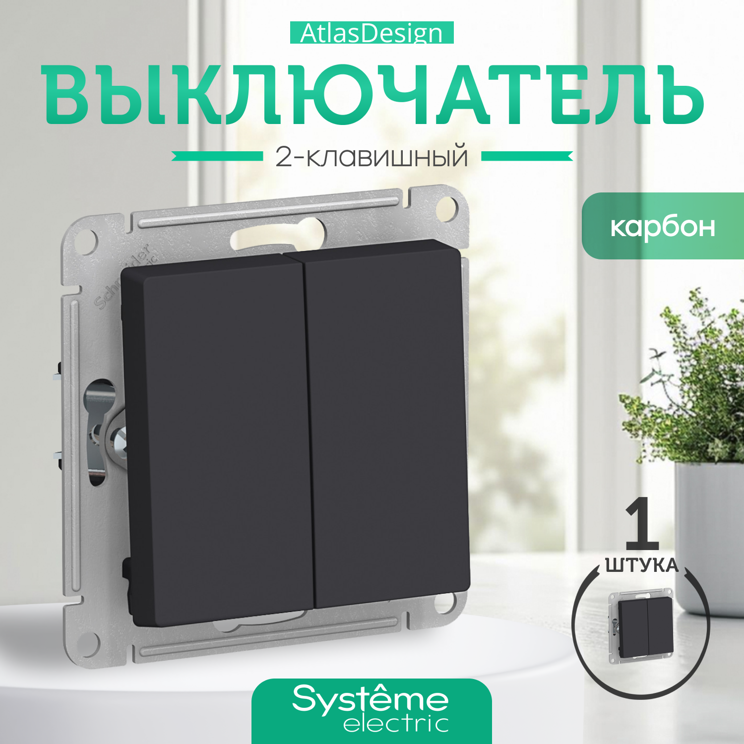 Выключатель 2-клавишный с самовозвратом Systeme Electric (Schneider Electric) Atlas Design 10А грифель ATN000717