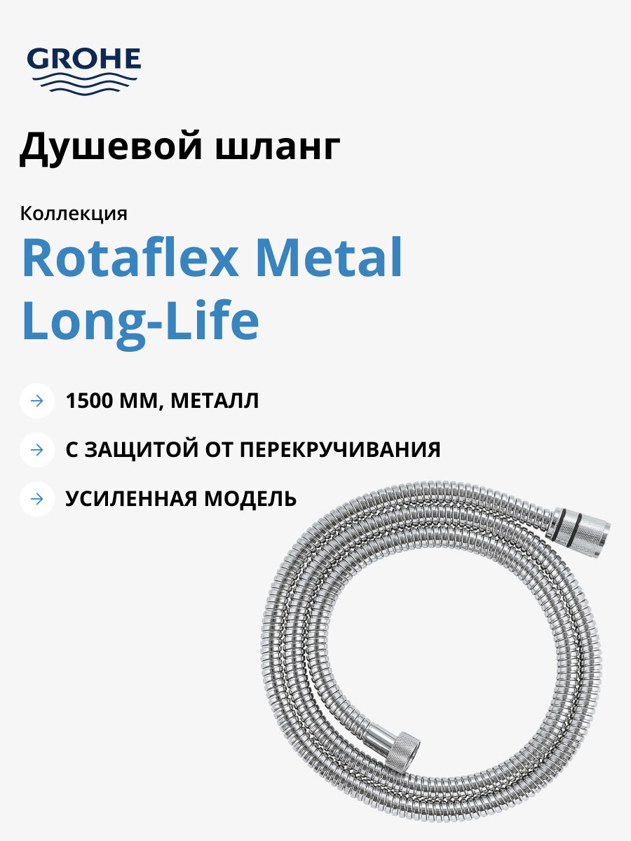 Душевой шланг GROHE Rotaflex Metal Long-Life 1500 мм с защитой от перекручивания хром (28417001)