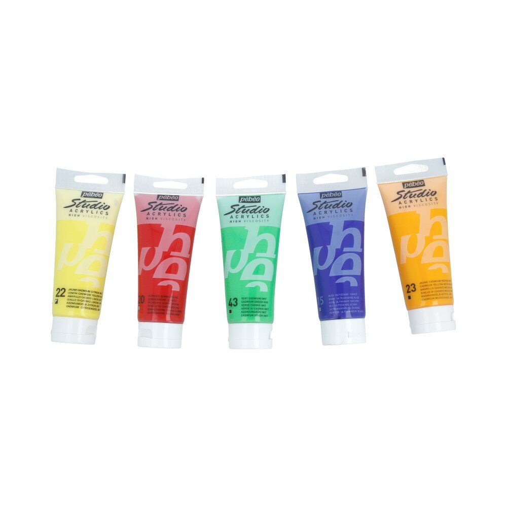 Акрил STUDIO представлен обширной цветовой палитрой из 63 цветов, в которую, помимо основных цветов вошли иридисцентные, металлические и флуоресцентные оттенки. Доступен поштучно в тубах по 100 миллилитров и в наборах различной комплектации.