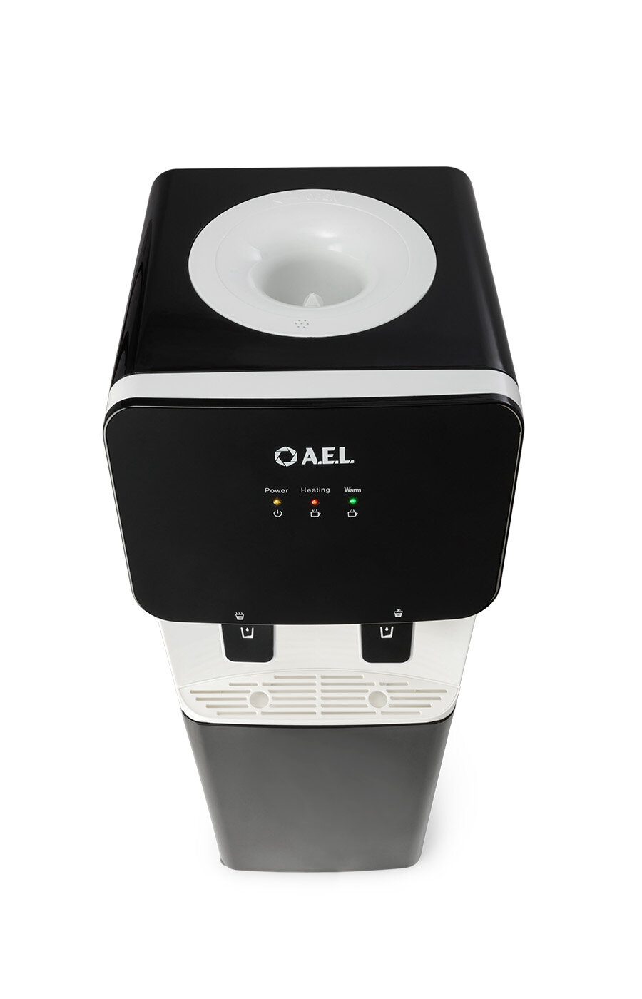 **Кулер для воды напольный верхняя загрузка A.E.L. LD-AEL-85C** —напольное устройство, оснащенное электронным охлаждением и нагревом. Идеальное решение для офисов, административных зданий, гостиниц и прочих объектов. Отличается удобным и простым управлением. Бутыль с водой устанавливается сверху. Устройство позволяет круглый год получать как охлажденную воду, так и кипяток для приготовления чая или кофе. Корпус белый, с черными вставками на лицевой панели. Для нормальной работы устройство не требует особого обслуживания. Дополнительно предусмотрен шкафчик.