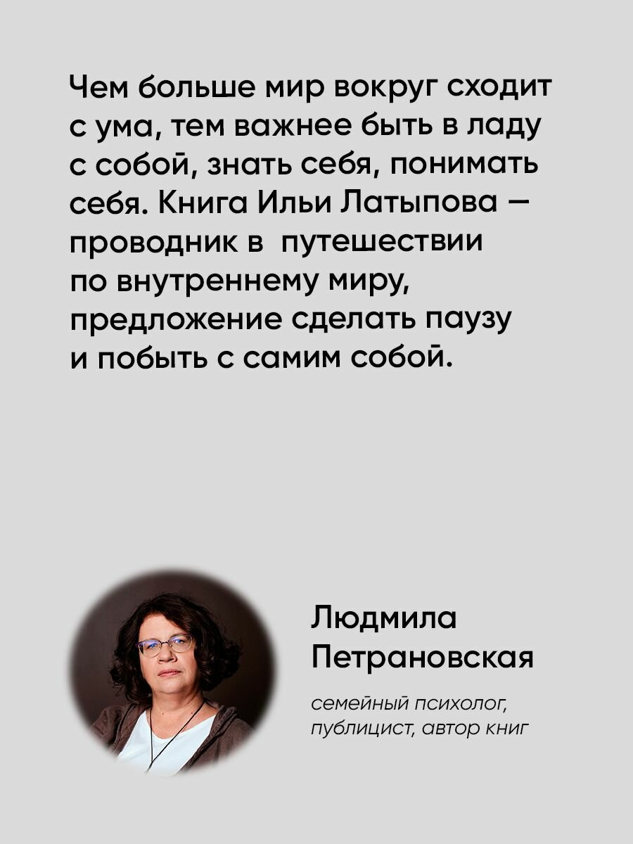 Книга-размышление, которая приближает к пониманию смысла жизни и нашему месту в ней с точки зрения экзистенциальной психологии. О том, как встречать главные вызовы жизни, что такое эмоциональная боль и почему важно ее не глушить, а уметь проживать. Уникальный авторский стиль бережный и поддерживающий читателя, учитывающий российские реалии. Книга основана на клиентской практике автора и собственных переживаниях.Одной из главных характеристик жизни современного человека является суета. Стрессовые ситуации и общее ускорение темпа жизни редко позволяют сделать паузу и задуматься о своем психологическом комфорте и необходимости что-то изменить. Известный психолог и гештальт-терапевт Илья Латыпов предлагает замедлиться и отправиться в увлекательное путешествие самопознания, в котором вы встретитесь с главными экзистенциальными вызовами человечества, разберетесь с эмоциональными реакциями и их последствиями. Как примириться с тем, что все в мире конечно? Как принять несовершенство себя и других? Какую цену мы платим за сделанные выборы, в том числе свободу? Как справиться с одиночеством, изоляцией, травлей? Как найти смысл жизни? Почему важно проживать эмоциональную боль, а не игнорировать ее? Эта книга незаменимый помощник на вашем пути к внутренней гармонии и силе, а ее автор бережный, поддерживающий спутник.Об автореПсихолог, гештальт-терапевт, кандидат психологических наук, автор статей и книг, «психоблогер», муж, отец троих детей. Но никакие регалии, звания, награды и достижения не смогут заменить подлинности, если нет живого эмоционального контакта между людьми, более того, они часто маскируют пустоту. Поэтому пусть говорит книга. Надеюсь, у нас с вами получится интересный разговор.ОсобенностиИллюстрации-фотографии из личной коллекции автора на шмуцах.Книги по психологии и саморазвитию помогут женщинам и мужчинам обрести гармонию и счастье внутри, пережить душевную боль, отстоять личные границы, мотивацию для достижения поставленных целей, решить вопросы в отношениях с собой и в паре и даже разобраться с деньгами.