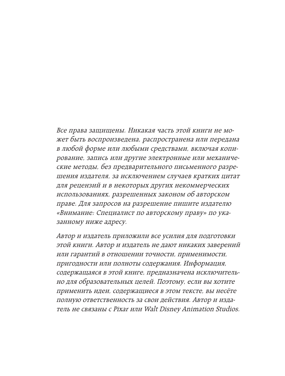 Бестселлер Амазона! 10 глав — 10 советов, каждый из которых аргументируется на основе уже существующих анимационных фильмов компании. Будет интересна начинающим писателям и сценаристам, которые хотят научиться рассказывать истории, а также поклонникам мультфильмов Pixar, которым интересно узнать больше о создании их любимых историй. В обновленном дополненном издании автор книги добавил разбор новинок студии, таких как «История игрушек 4», «Вперед», «Душа», «Базз Лайтер» и «Элементарно»!