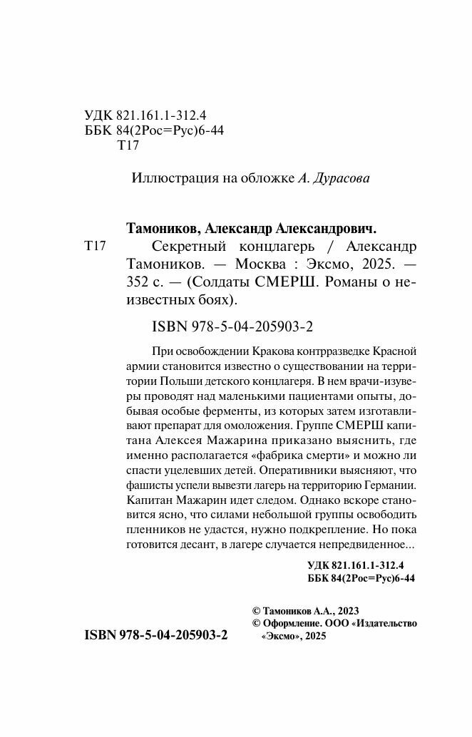 Сервис сравнения цен СкидкаГИД предлагает сравнить цены на товар «Книга: Секретный концлагерь (Александр Александрович Тамоников); Эксмо, 2024»