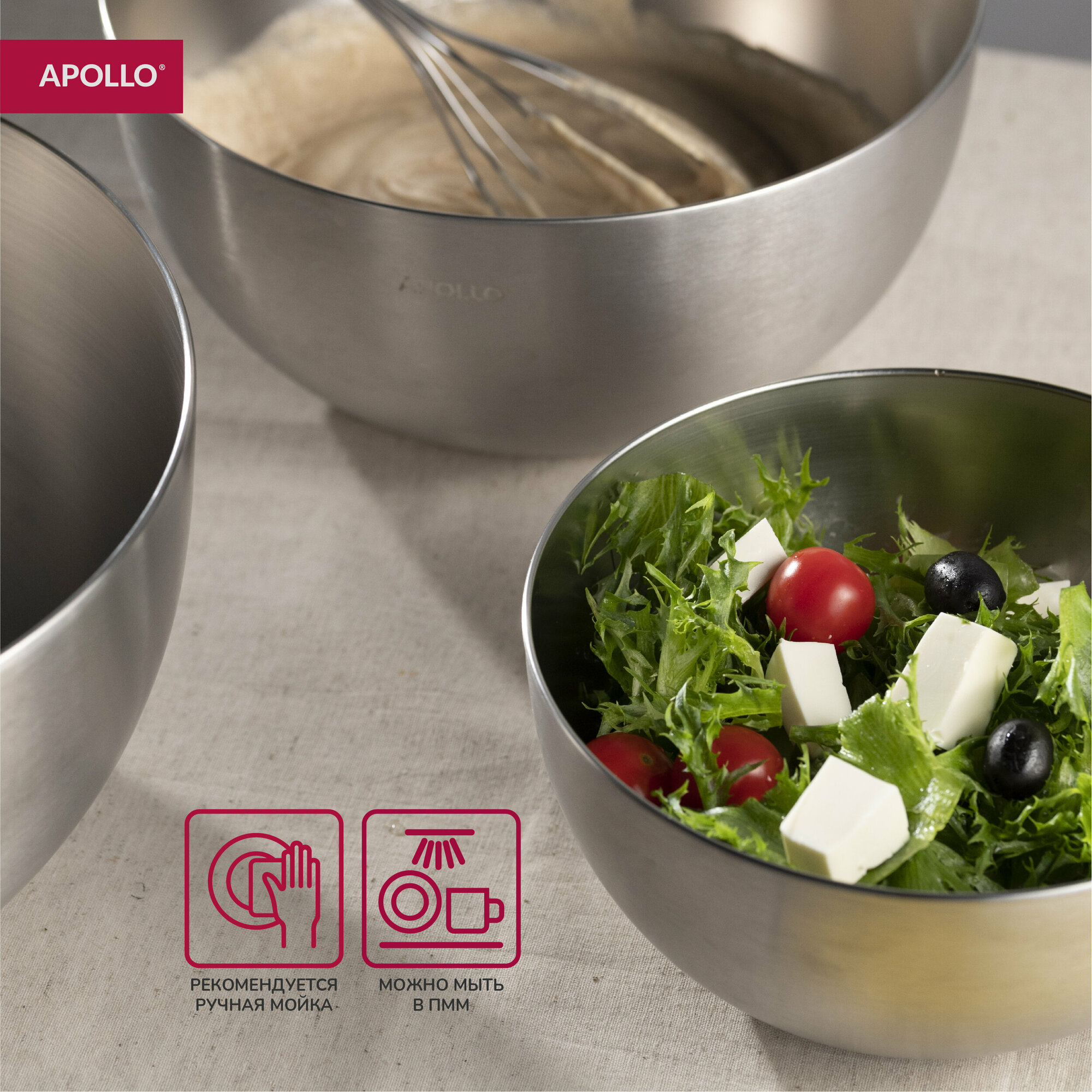 Набор из 3-х мисок с мерной шкалой разного объема, изготовленных из нержавеющей стали, станет незаменимым помощником на кухне. Изделия имеют элегантный дизайн с матовой полировкой, зеркальную поверхность и толщину 0,2 мм, что придает им прочность и устойчивость к повреждениям. Набор представлен в 3-х размерах: 19см, объем 2л, 24см, объем 4л и 29см, объемом 6,5л. Набор подходит для смешивания ингредиентов, нарезания овощей, приготовления и сервировки блюд. Он удобен и практичен в использовании, обеспечивает комфорт при работе на кухне. Миски можно мыть в посудомоечной машине и использовать для подачи продуктов. Набор мисок Apollo "Bowl" станет уникальным инвентарем на кухне, поможет вам создавать вкусные блюда и добавит изысканности в сервировку стола. Приобретите этот многофункциональный и стильный набор и наслаждайтесь удобством и качеством от Apollo "Bowl"!