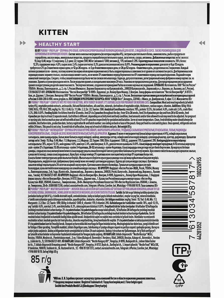 В организме кошек после стерилизации происходят серьезные гормональные изменения. Если их рацион питания при этом не корректировать — возрастает риск развития ожирения и проблем с мочевыделительной системой. Таким питомцам необходим специальный корм с повышенным содержанием белка, ограниченным составом минералов и богатыми вкусовыми качествами. Команда квалифицированных ветеринарных специалистов разработала влажный корм PURINA PRO PLAN STERILISED MAINTENANCE для взрослых стерилизованных кошек. Этот полнорационный корм для кошек с говядиной разработан с учетом их потребностей в высококачественном белке, подходит для ежедневного кормления. • Влажный корм для стерилизованных кошек помогает поддерживать здоровье мочевыделительной системы, способствуя разбавлению мочи*. • Способствует сохранению оптимального веса у взрослых стерилизованных кошек и кастрированных котов. • Помогает поддерживать естественную защиту организма благодаря антиоксидантам, таким как витамин Е.