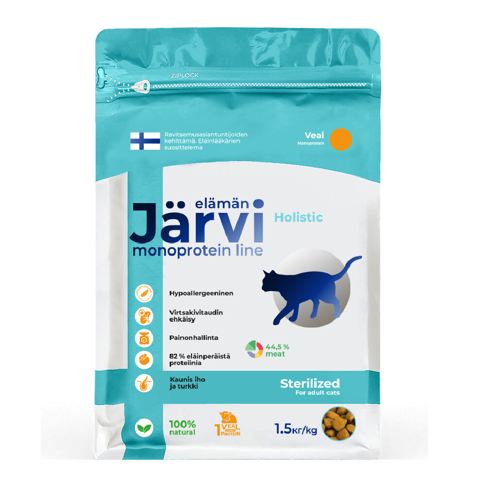 Jarvi сухой монопротеиновый полнорационный корм для стерилизованных кошек и кастрированных котов (Телятина 400 г.)