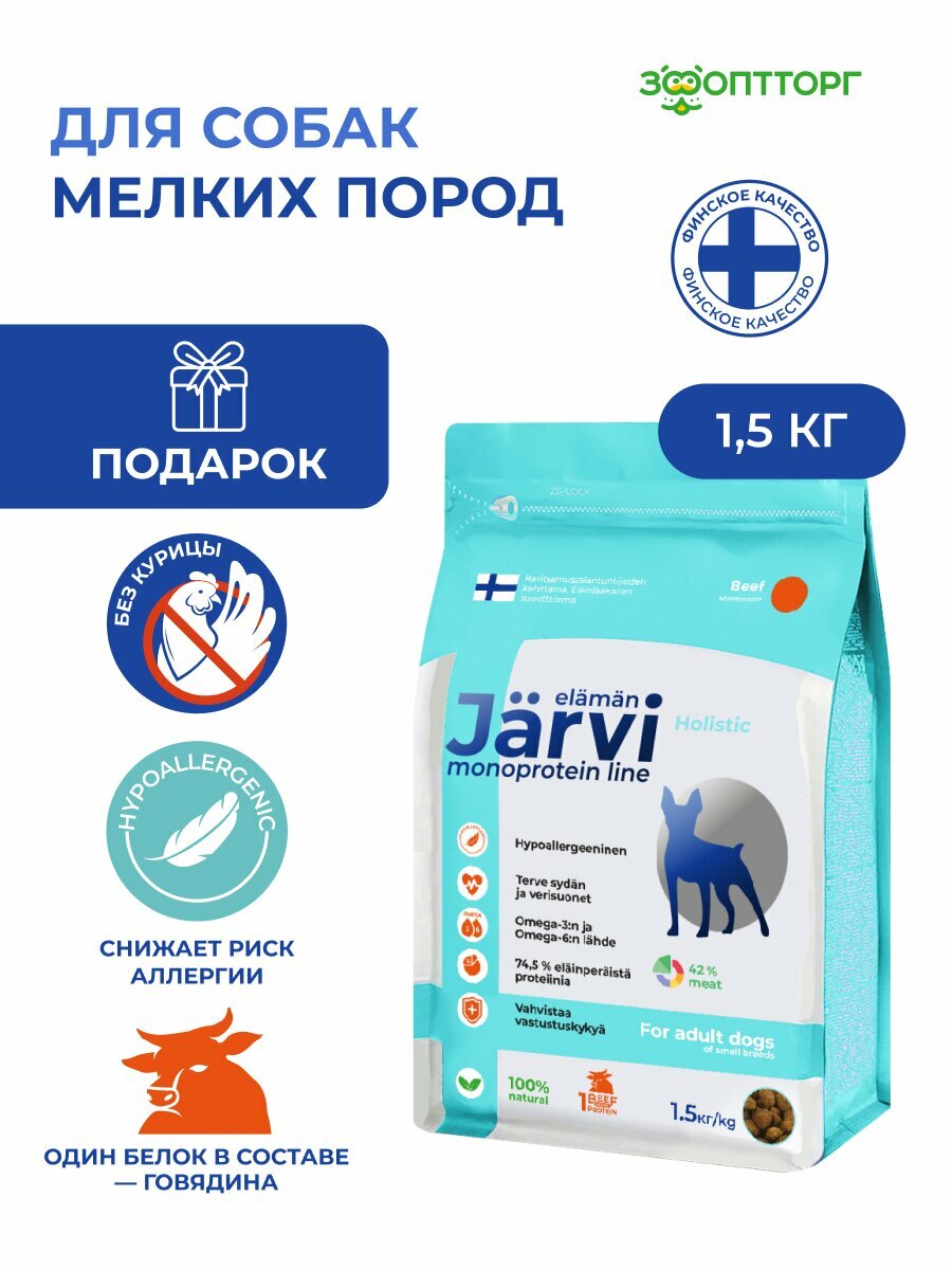 Jarvi монопротеиновый сухой корм для собак это сбалансированный рацион, специально разработанный для собак мелких пород.Особенности корма для собак Ярви:1. Говядина (31%) единственный источник животного белка в составе корма сухого для собак маленьких пород. Монопротеиновый корм снижает риск возникновения аллергии и уменьшает нагрузку на пищеварение. 2. Рис и ячмень легкоусвояемые углеводы, которые способствуют здоровью пищеварительной системы и обеспечивают питомцу энергию для активной жизни. 3. Поддержка сердечно-сосудистой системы: Масло лосося богато Омега-3 жирными кислотами, они способствуют поддержанию здоровья сердца и сосудов, улучшая кровообращение и снижая риск сердечно-сосудистых заболеваний.4. Витамины группы B: Пивные дрожжи играют важную роль в обмене веществ, поддержании здоровья кожи, шерсти и нервной системы.5. Jarvi гипоаллергенный корм для собак не содержит искусственных красителей, ароматизаторов или консервантов.Польза:- Снижение риска пищевой аллергии- Поддержание здоровья сердечно-сосудистой системы- Комплекс пре- и пробиотиков для пищеварения- Здоровая кожа и красивая шерстьРазнообразьте рацион питомца влажными кормами и лакомствами Jarvi это будет стимулировать его аппетит и послужит дополнительным источником влаги, витаминов и минералов.