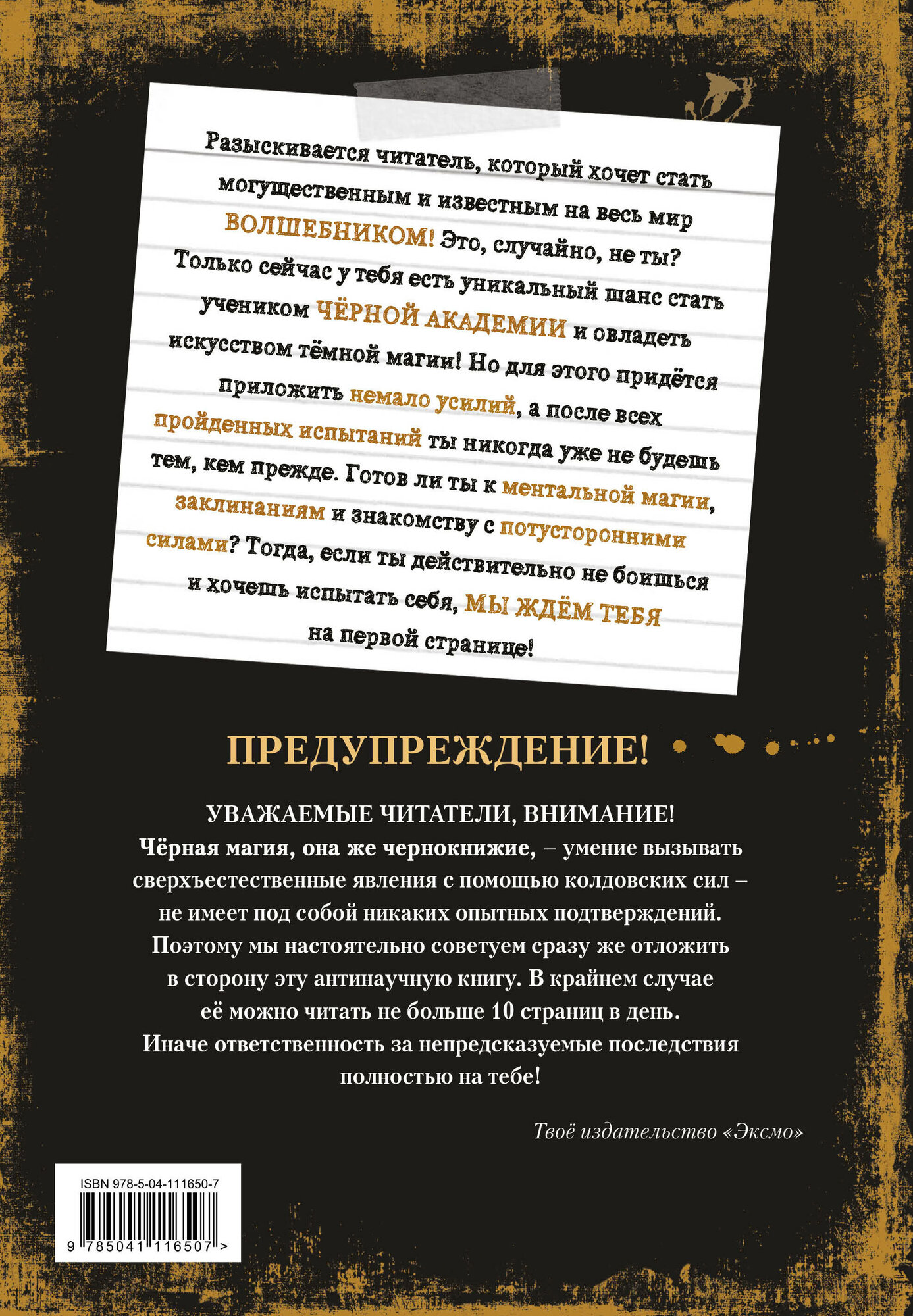 Третья «Злая книга» от таинственного волшебника Магнуса Миста! На этот раз он отправляет своих читателей в печально известную «Чёрную академию», где новичков обучают секретам тёрной магии, запретным правилам коварства, знакомят с рунами и волшебными артефактами. Задания и испытания становятся всё более опасными и злыми, а тех, кто откажется их выполнять, ждёт выбор: ужасный конец или ужас без конца. Читателям самим предстоит решить, как далеко они хотят зайти Настоятельно рекомендуется противникам скучных книг!