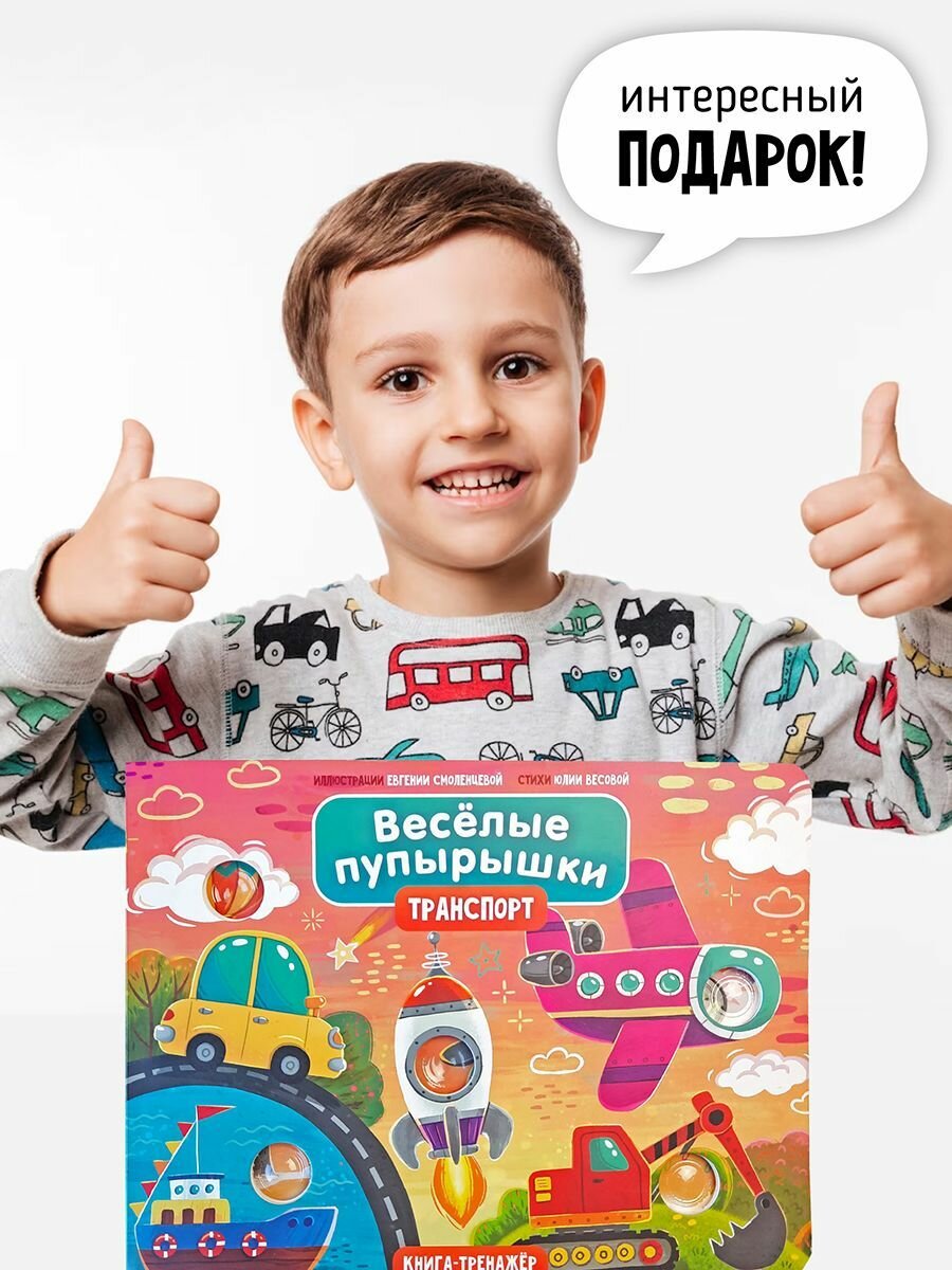 Тактильная книга-тренажер "Веселые пупырышки. Транспорт" (Юлия Весова); Счастье внутри, 2024