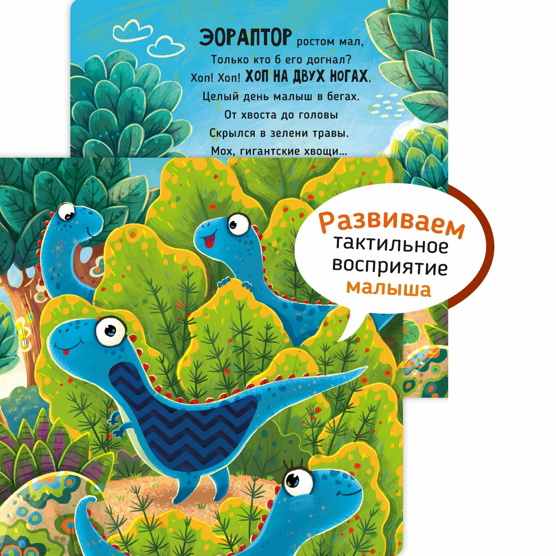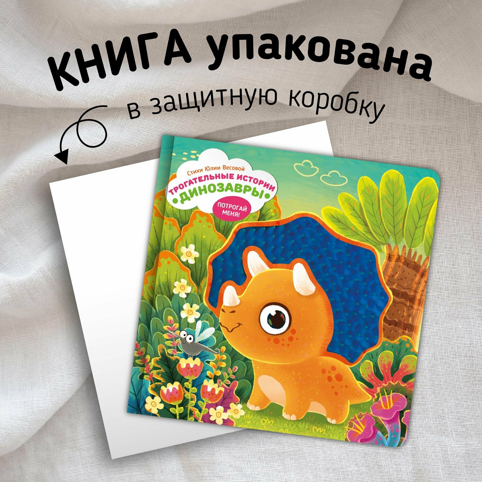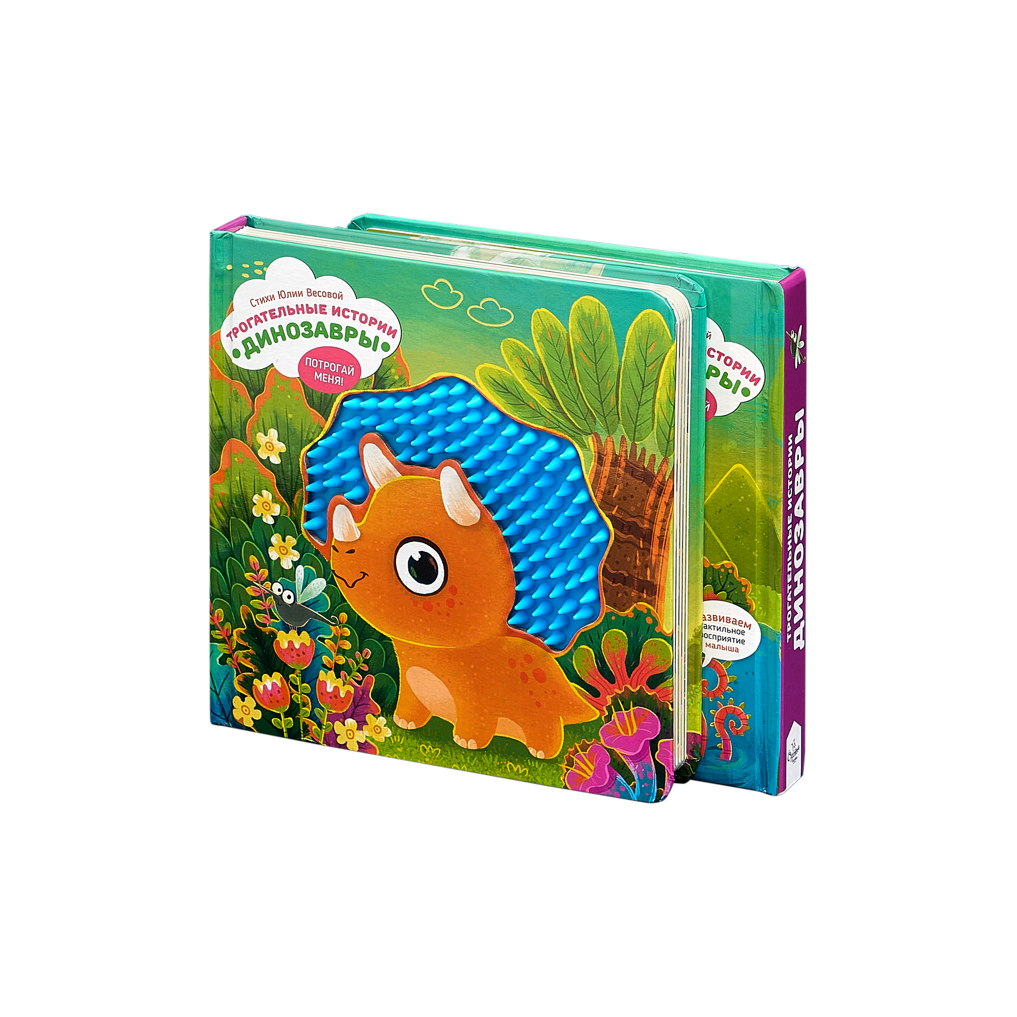 Тактильная развивающая книга-игрушка "Трогательные истории. Динозавры" (Юлия Весова); Счастье внутри, 2024