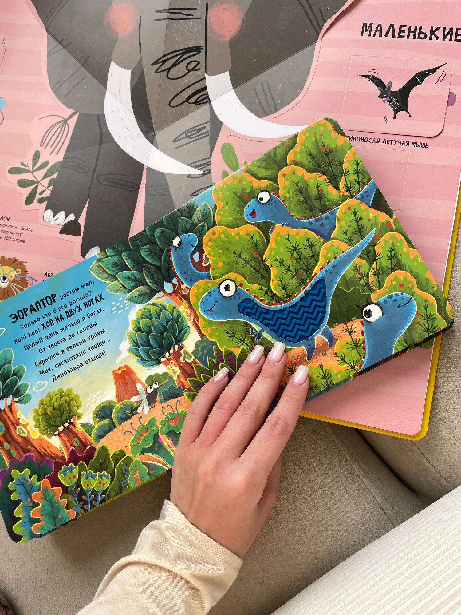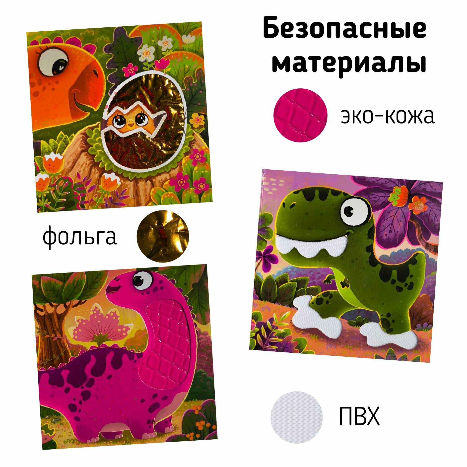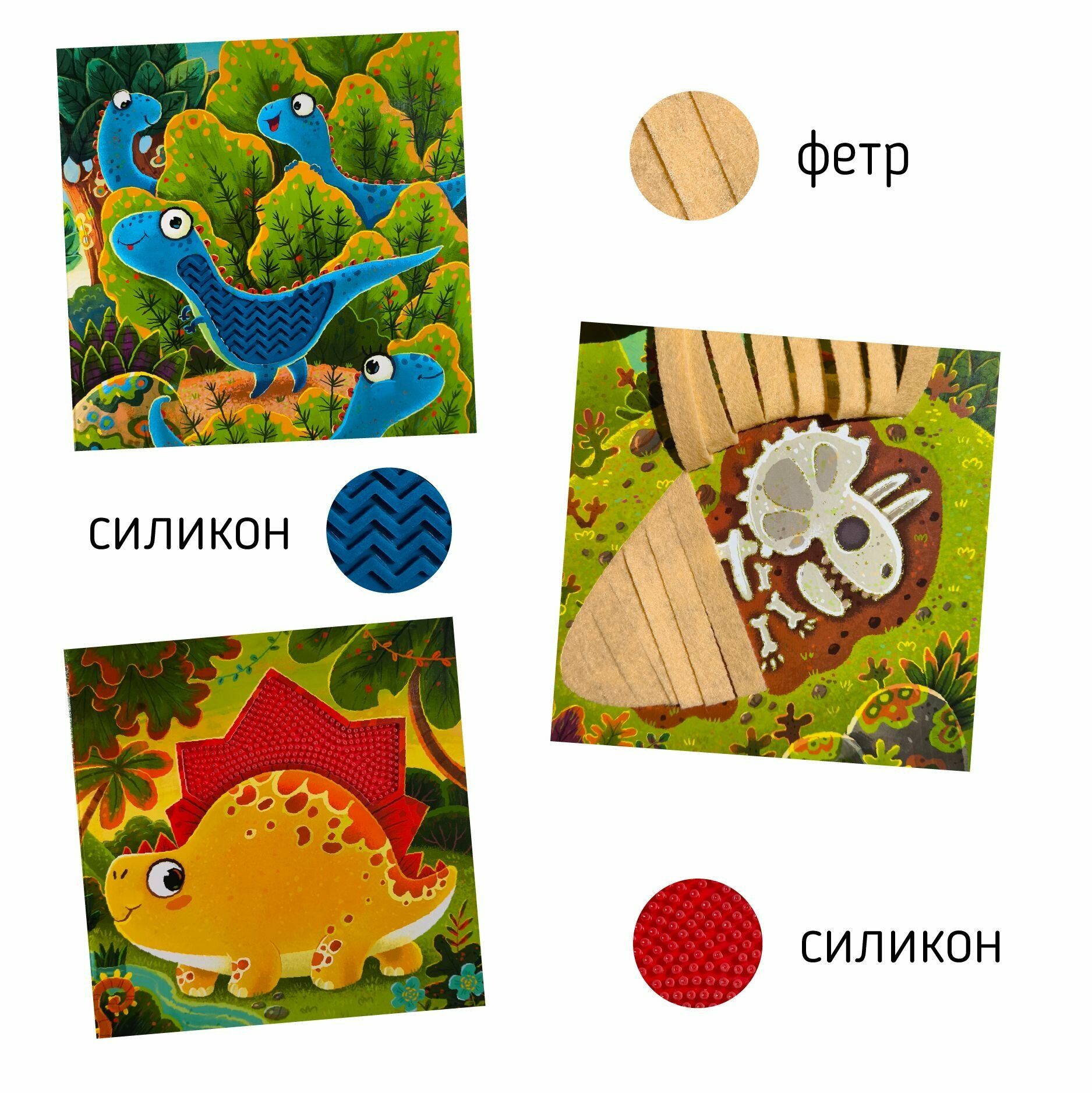 Тактильная развивающая книга-игрушка "Трогательные истории. Динозавры" (Юлия Весова); Счастье внутри, 2024