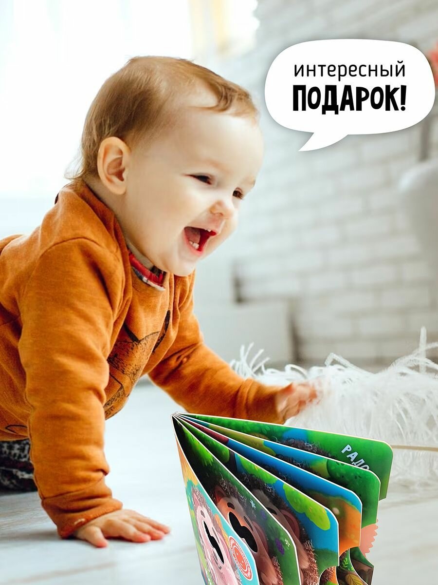 Страницы из плотного картона с красочными иллюстрациями идеально подойдут для маленьких ручек.