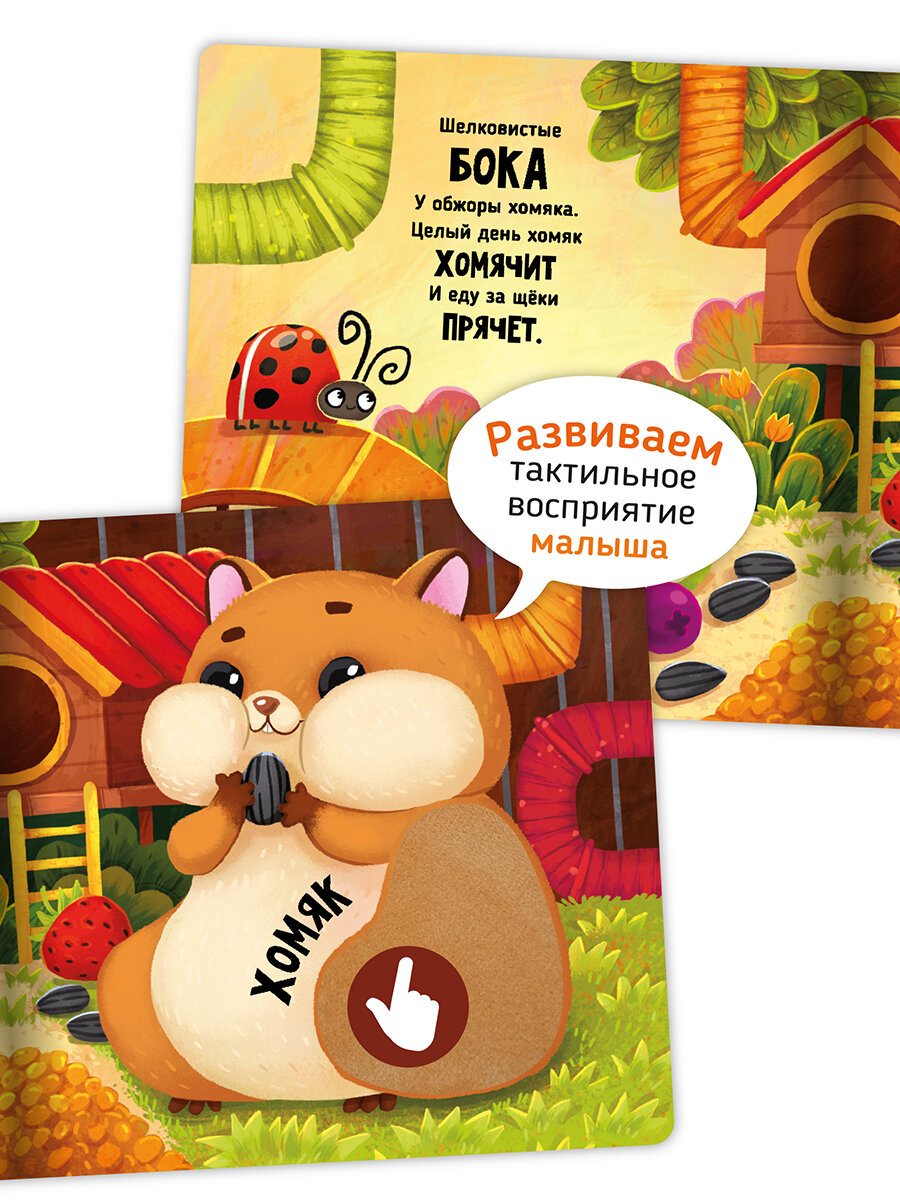 Трогательные истории в забавных стихах об обитателях сафари и леса, о домашних питомцах и транспорте для самых маленьких от Юлии Весовой – серия инновационных тактильных книг для детей и малышей от 0 лет, которые не только расскажут об интересных животных и транспорте для людей но и дадут прикоснуться к персонажам книг. Какая грива у льва? Какая кожа у слона? Какой хвостик у лисички или у зайки? Какие бока у хомяка? Какие колеса у машины? Потрогай и узнаешь! Развивающие книжки-игрушки для детей с тактильными вставками из силикона и меха станут прекрасным оригинальным подарком для малыша на праздник день рождения, ведь они развивают воображение, речь, память, моторику ребёнка и тактильное восприятие. Развивашка для детей как все устроено. Материал изделия: картон, искусственный мех, силикон действует как антистресс, поп ит.
