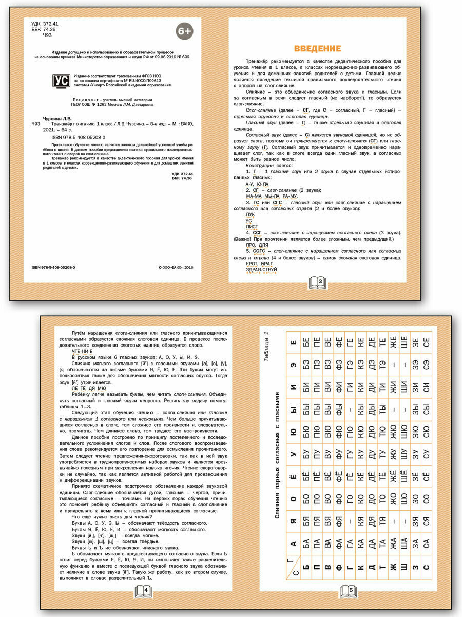 Правильное обучение чтению является залогом дальнейшей успешной учебы ребёнка в школе. В данном пособии представлена техника правильного последовательного чтения с опорой на слог-слияние. Тренажёр рекомендуется в качестве дидактического пособия для уроков чтения в 1 классе, в классах коррекционно-развивающего обучения и для домашних занятий родителей с детьми.