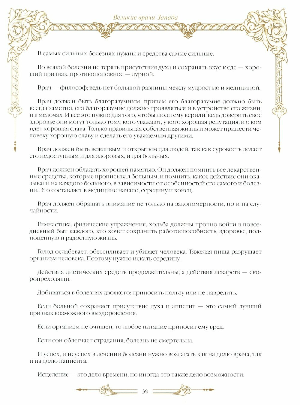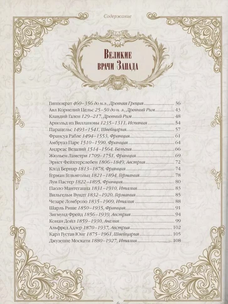 В сборник вошли уникальные изречения о жизни и здоровье Авиценны, Гиппократа, К. Галена, Парацельса, А. Паре, А. Везалия, К. Бернара, Л. Пастера, Ч. Ломброзо, З. Фрейда, К. Юнга, Н. И. Пирогова, И. М. Сеченова, С. П. Боткина, Н. В. Склифосовского, И. И. Мечникова, И. П. Павлова, П. А. Бадмаева, В. М. Бехтерева и многих других.