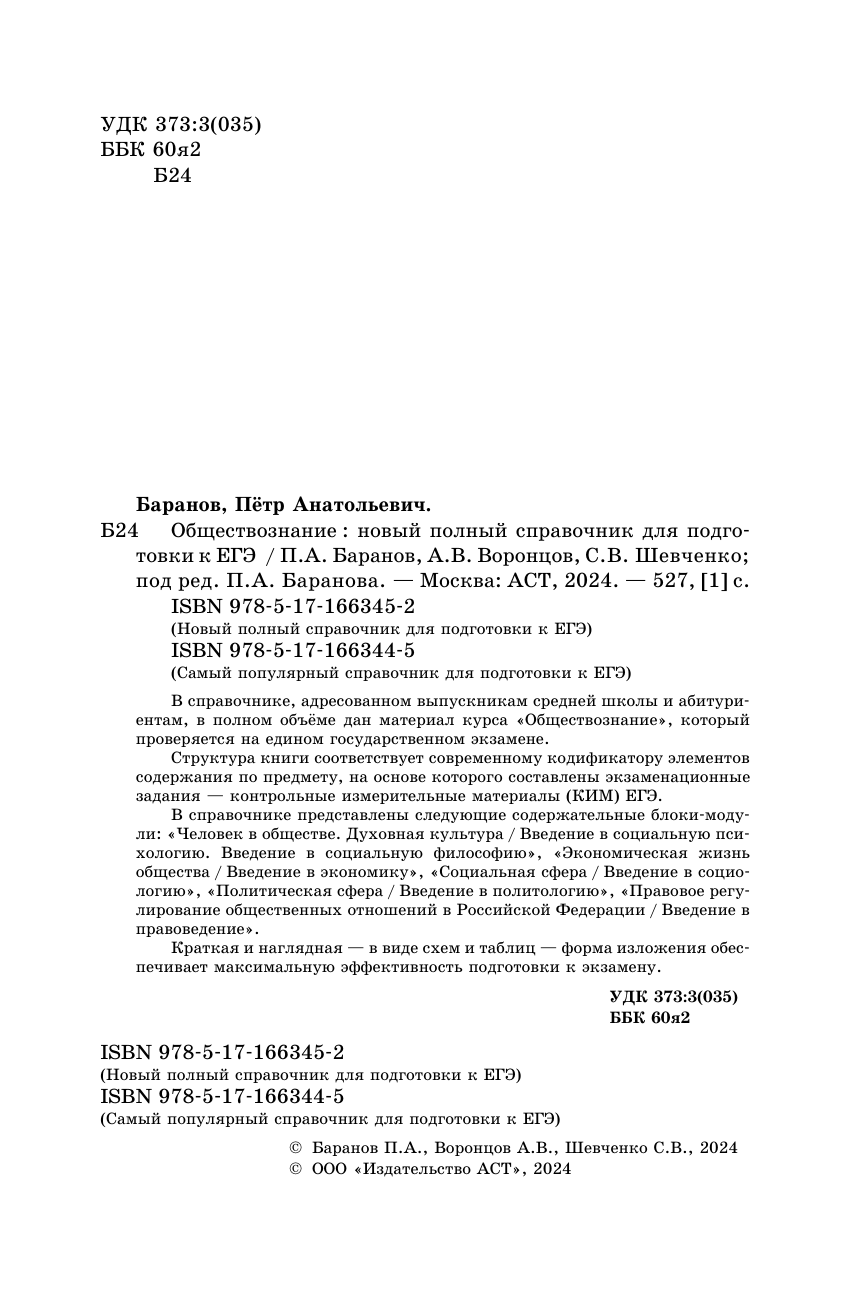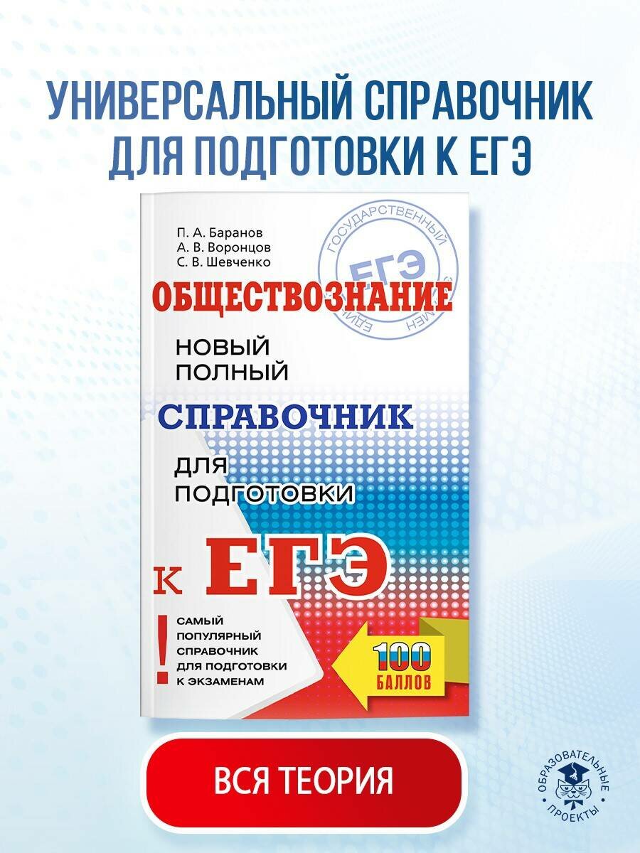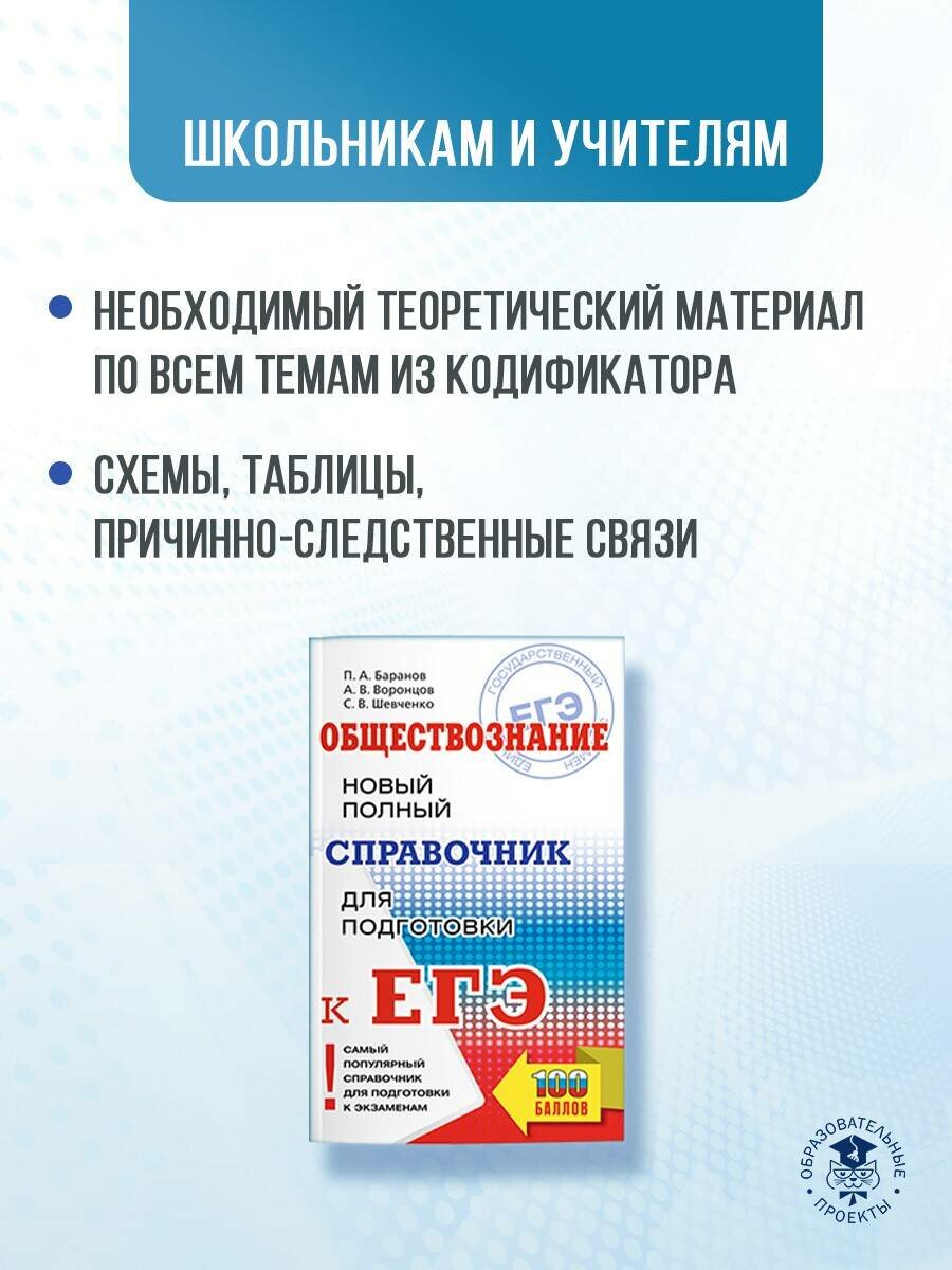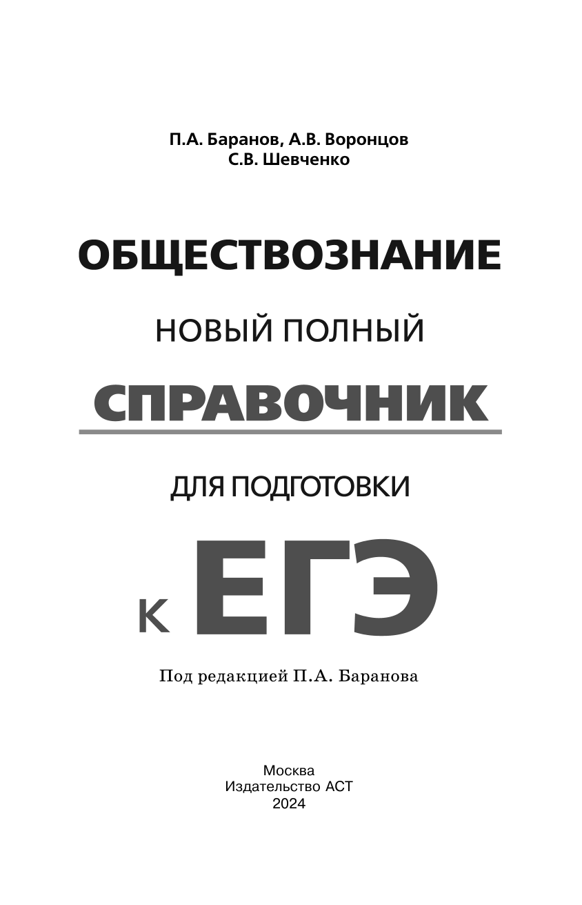 ЕГЭ. Обществознание. Новый полный справочник для подготовки к ЕГЭ (Сергей Владимирович Шевченко, Пётр Анатольевич Баранов, Александр Викторович Воронцов); АСТ, 2025