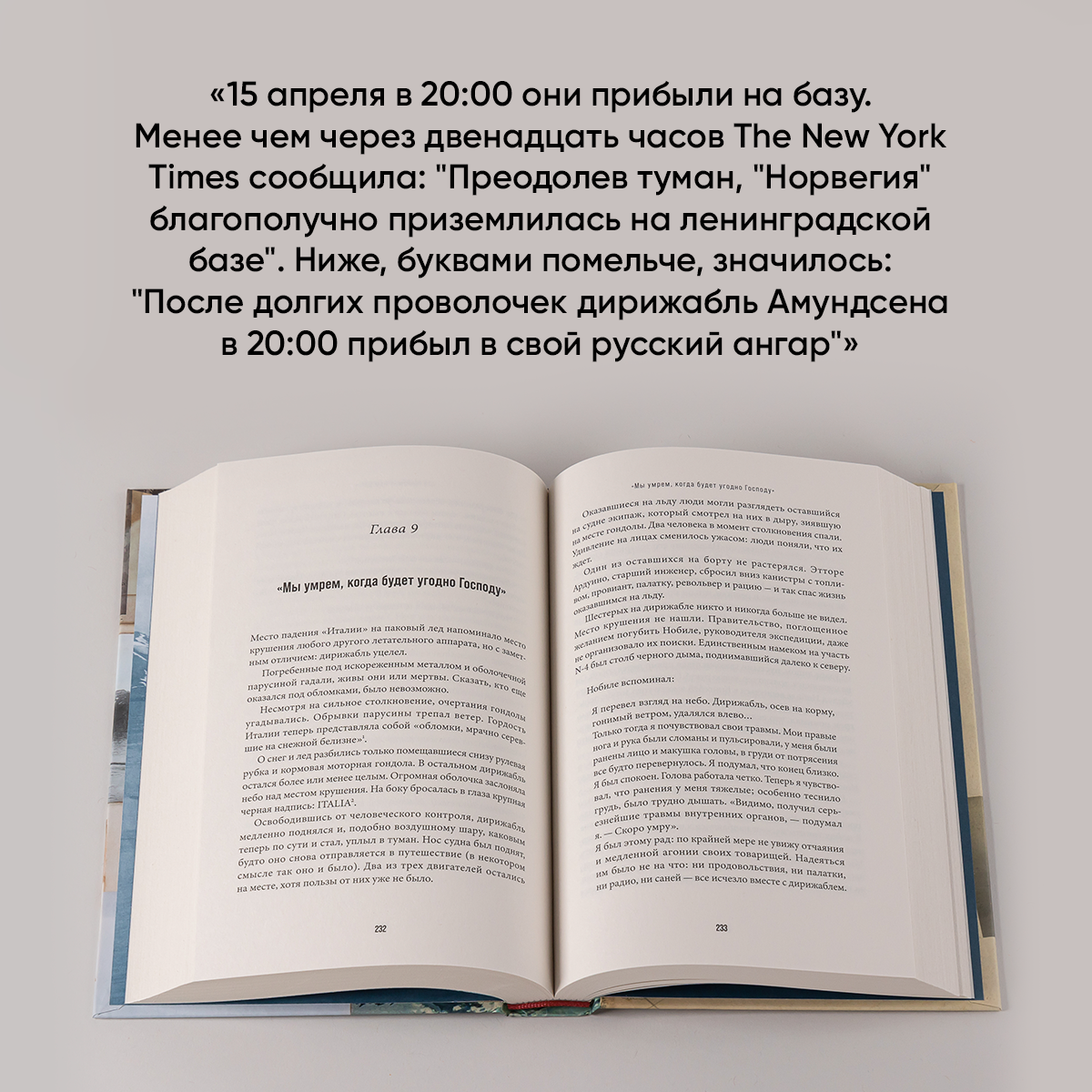 24 мая 1928 года с триумфом возвращавшийся с Северного полюса исследовательский дирижабль «Италия» попал в бурю и разбился во льдах. После его исчезновения весь мир, затаив дыхание, несколько недель следил за крупнейшей в истории изучения Арктики спасательной операцией. Первым сигнал радиостанции выживших полярников сумел поймать советский радиолюбитель Николай Шмидт. Это произошло 3 июня. Прославленный покоритель полюсов Руаль Амундсен, помогавший вести поиски, вскоре сам пропал в ледяной пустыне. 23 июня шведский летчик сумел вывезти со льдины руководителя экспедиции Умберто Нобиле, и только в июле остальных полярников спас советский ледокол «Красин». Соединяя свидетельства потерпевших крушение и тех, кто пришел им на помощь, автор книги рассказывает захватывающую историю катастрофы, героических поисков и спасения, произошедшую, когда блеск и безграничная отвага эпохи дирижаблей столкнулись с суровой реальностью Арктики.
