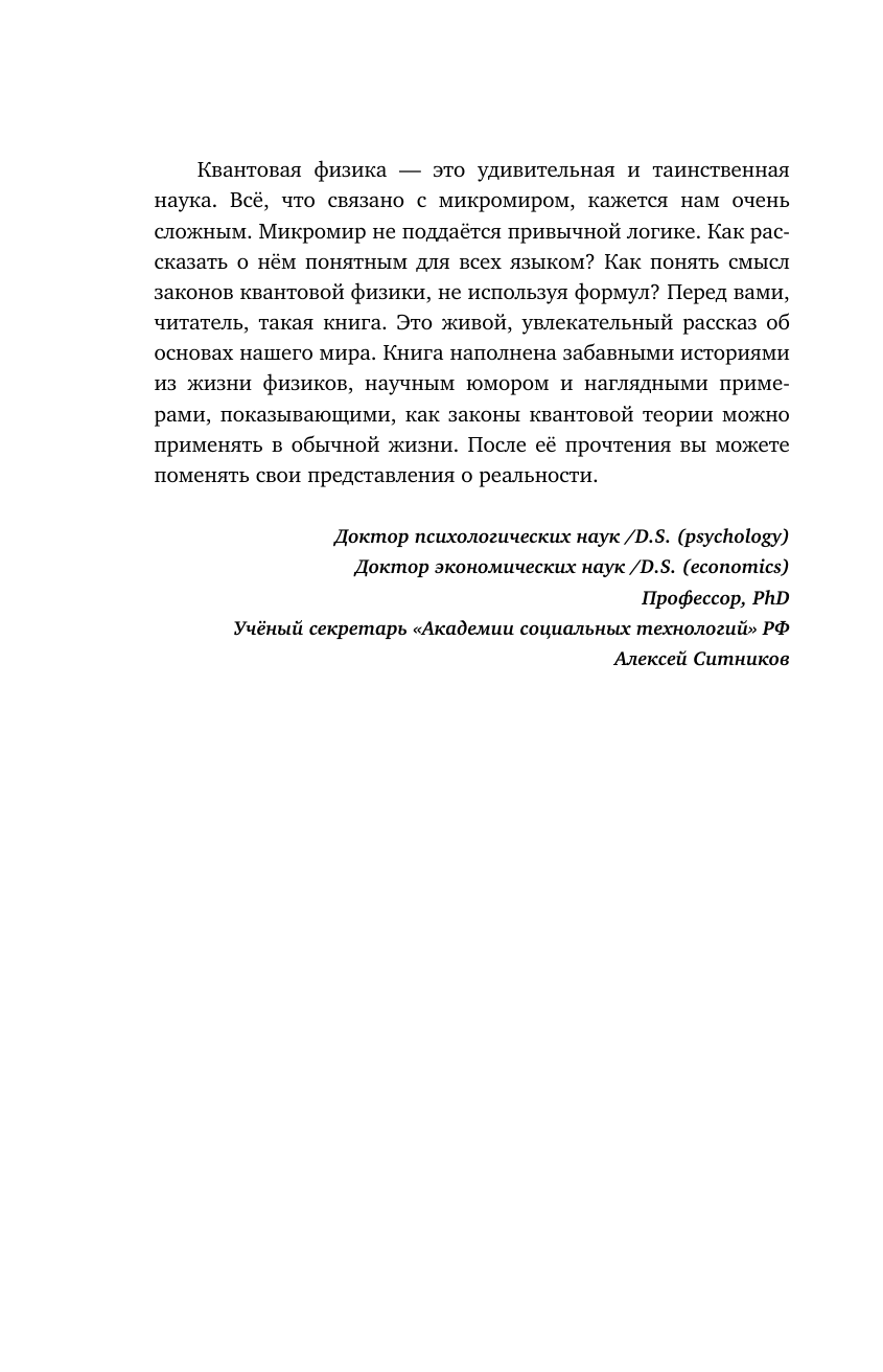Автор книги - профессиональный физик-ядерщик - просто с юмором расскажет о законах квантовой физики, на примерах объяснит понятия и раскроет их значение в повседневной жизни.
