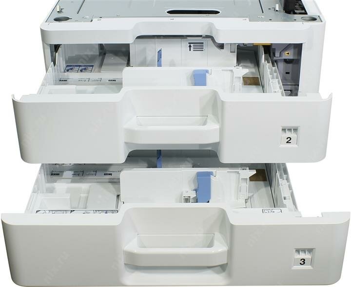 Блок из 2 кассет для бумаги — позволяет существенно увеличить общий запас бумаги базового устройства. Встроенные в блок кассеты для бумаги легко настраиваются под нужный формат бумаги и снижают временные затраты на добавление бумаги в лотки.
