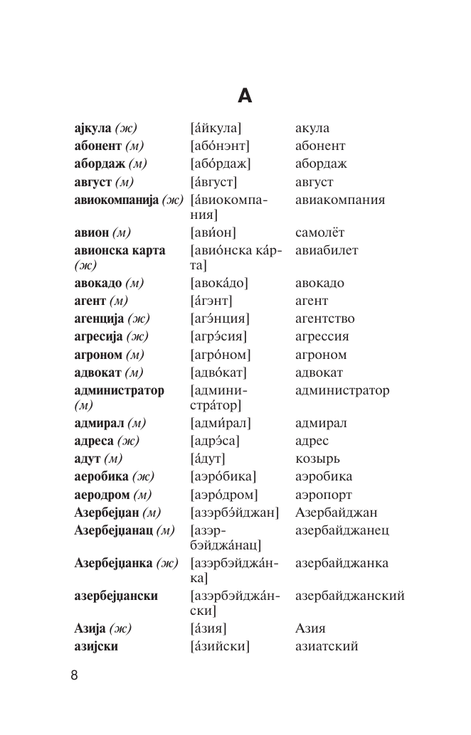 Словарь предназначен для всех, кто начинает изучать сербский язык, и может быть использован на занятиях с преподавателем или при самостоятельном изучении.